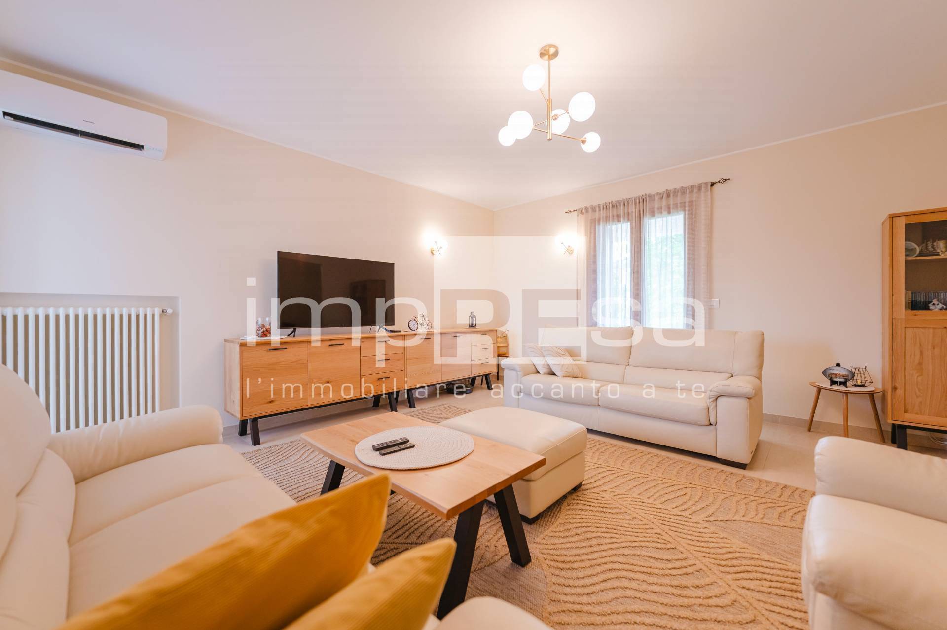 La zona giorno si distingue per gli ambienti luminosi e accoglienti, con un ampio soggiorno valorizzato da riscaldamento a radiatori, stufa a pellet e climatizzazione.