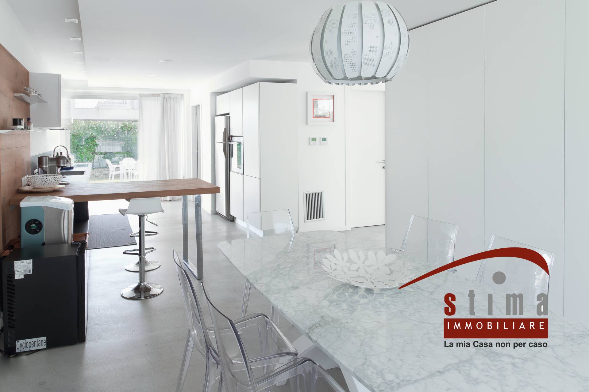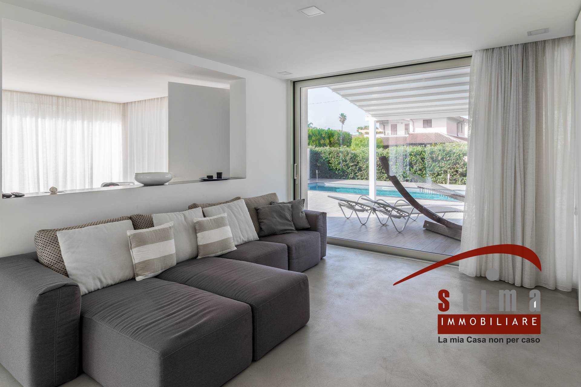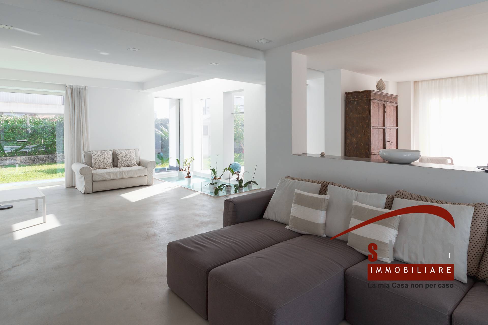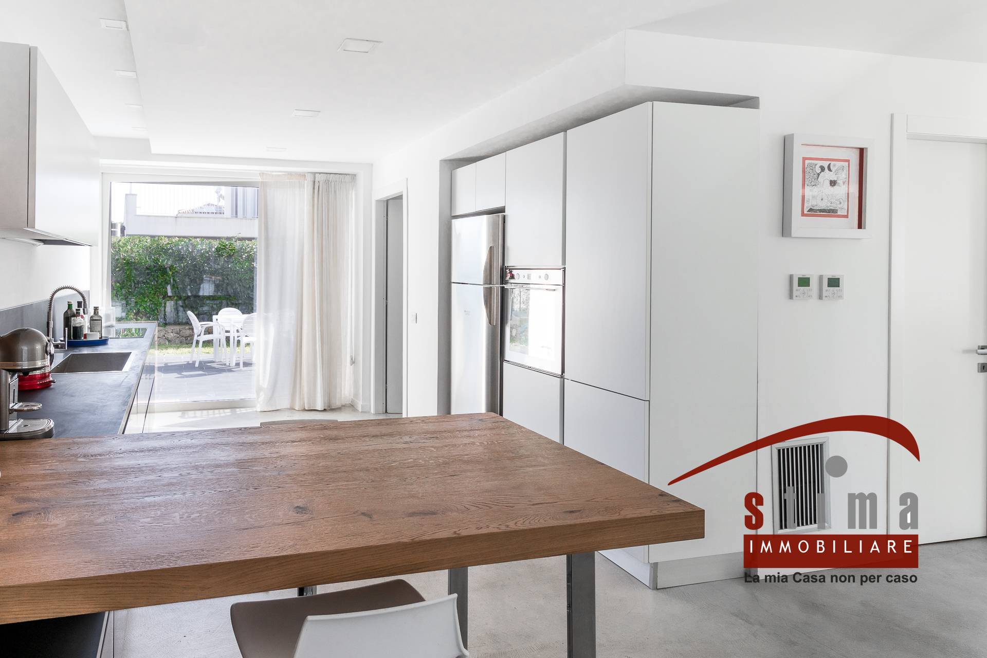 La villa, disegnata da un prestigioso architetto, si sviluppa su 4 livelli e si presenta con l'ingresso principale che si apre su un luminoso soggiorno, dotato di ampie finestre che permettono di godere della vista sul giardino circostante, una cucina abitabile e funzionale, completamente attrezzata e arredata con gusto ed un bagno di servizio completano il piano; una scala di design porta alla zona notte, dove si trovano la camera padronale con un grande bagno privato e una comoda cabina armadio, una seconda camera da letto e un altro bagno; salendo ancora si accede alla mansarda, regolarmente accatastata come locale abitativo, un elegante spazio con camera da letto e bagno.