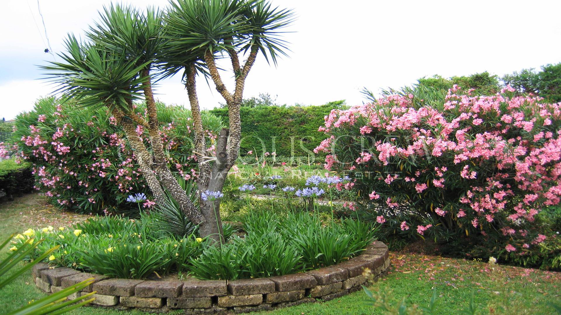 La villa padronale si sviluppa su tre livelli ed circondata da un parco mediterraneo composto da vialetti, siepi ornamentali, aiuole fiorite e da piante di alto fusto stagionali e sempreverdi.