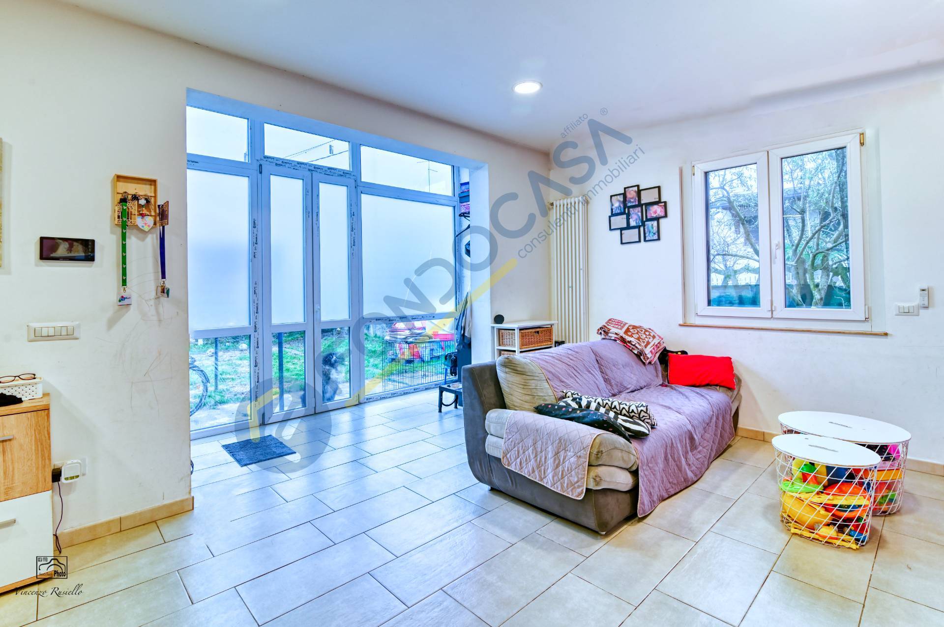 CARATTERISTICHE Questa soluzione pronta per te! Composta da ingresso nell'ampio e luminoso soggiorno con cucina a vista, un primo bagno finestrato e ripostiglio/lavanderia al piano terra; salendo al piano superiore si trovano due camere matrimoniali di cui una con affaccio sul balcone e un secondo spazioso bagno finestrato con box doccia! A completare la soluzione un ampio spazio esterno in parte cementato e un box di 12 mq! Le condizioni dell'immobile sono ottime: internamente la casa stata completamente ristrutturata, la pavimentazione in laminato effetto parquet, gli infissi sono in pvc doppio vetro, la porta d'ingresso blindata, il riscaldamento autonomo ed presente anche la predisposizione per l'impianto di aria condizionata! Non sono presenti spese condominiali.