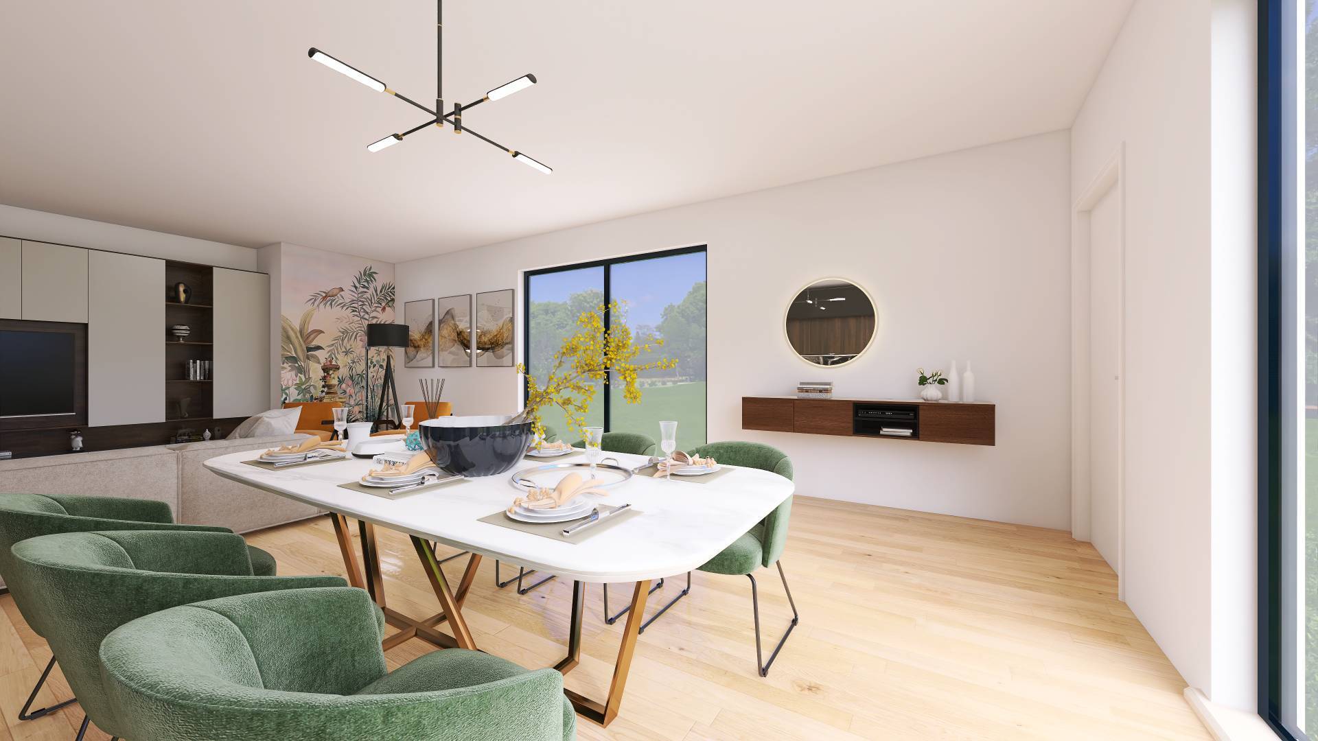 Il progetto prevede la realizzazione di una nuova costruzione ad alto efficientamento energetico e ad elevato comfort acustico, grazie all'utilizzo di finestre in PVC termoisolanti con vetri a basso emissivo ed elevato abbattimento acustico, applicazione di cappotto termico sulle pareti perimetrali, impianto a pannelli fotovoltaici al fine di alimentare la pompa di calore collegata ad impianto con riscaldamento a pavimento e alla linea per la produzione di acqua calda sanitaria.