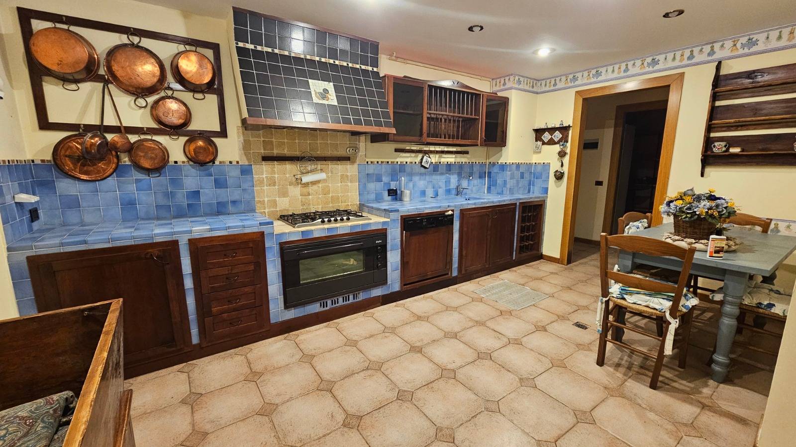 Al piano seminterrato, ampio locale adibito a rustico con camino, cucina a vista, un locale cantina e un locale da adibire a piacimento.
