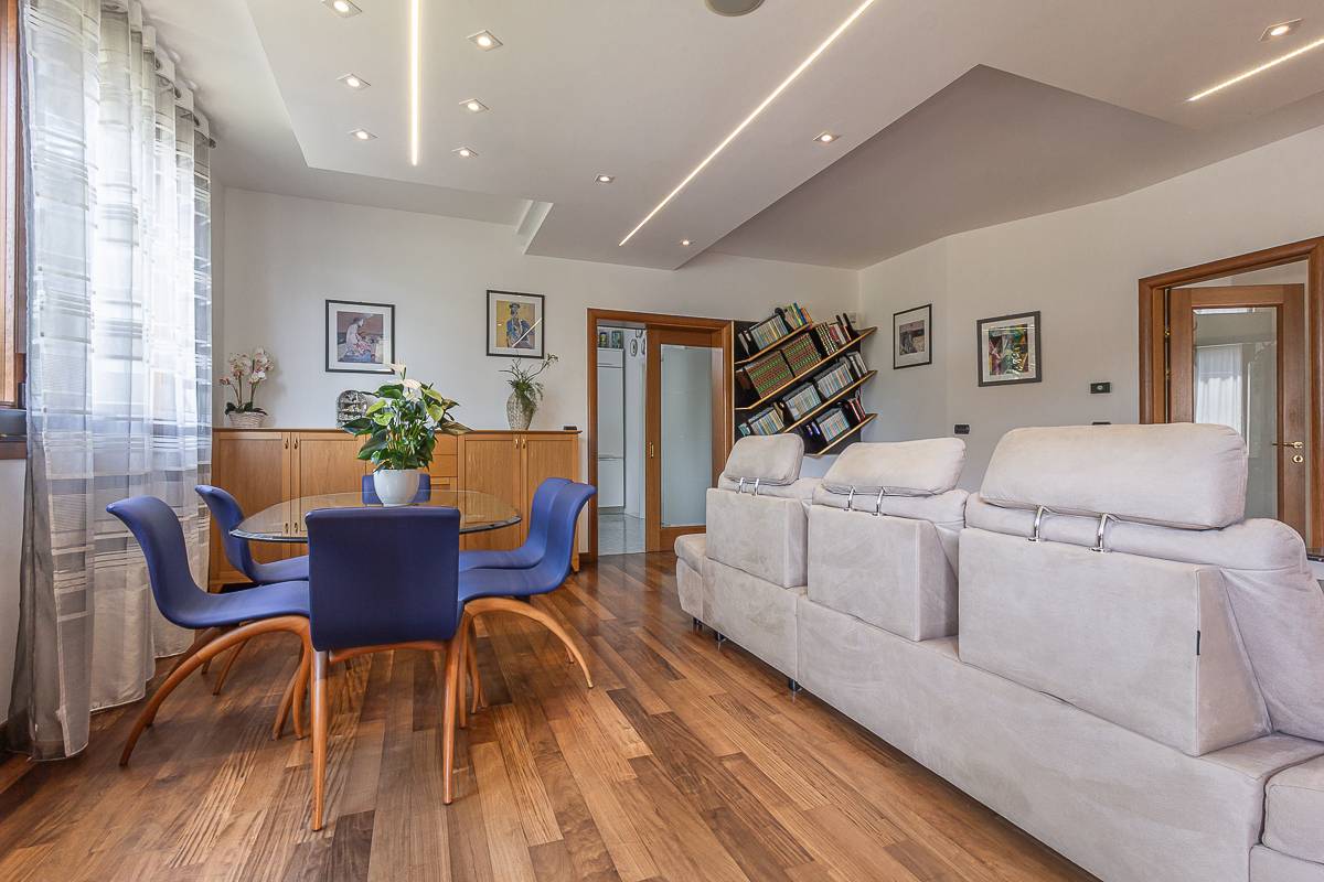 Qui troviamo: - Soggiorno mansardato con altezze generose (minima 2,45 m massima 3,95 m) - Cucina abitabile con accesso a un terrazzo vivibile - Tre camere (una adiacente al soggiorno, due, da letto, nella zona notte) - Due bagni - Ripostiglio e doppi disimpegni.