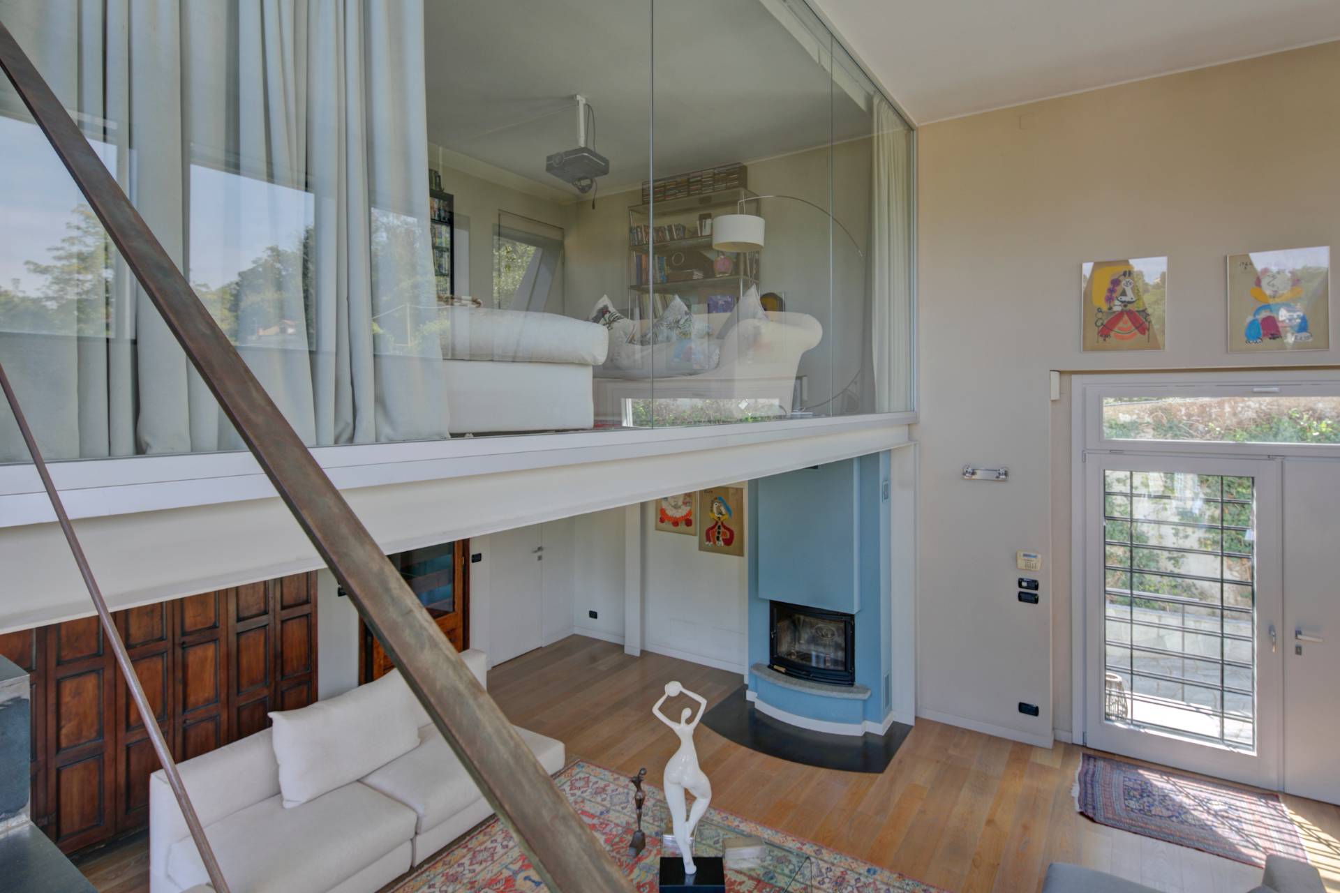In meravigliosa posizione panoramica a poca distanza dal centro di Torino, spicca questa moderna villa di lusso di importante design; Rinomata per essere stata la Casa Studio di Umberto Mastroianni, primo scultore astrattista italiano nonch artista e pittore di assoluto rilievo internazionale, la struttura fu progettata per lui dall'Architetto Enzo Venturelli nel 1953 secondo forme dinamiche astratto-geometriche, frutto della sua adesione allinformale e allastratto con contatti con lavanguardia torinese.