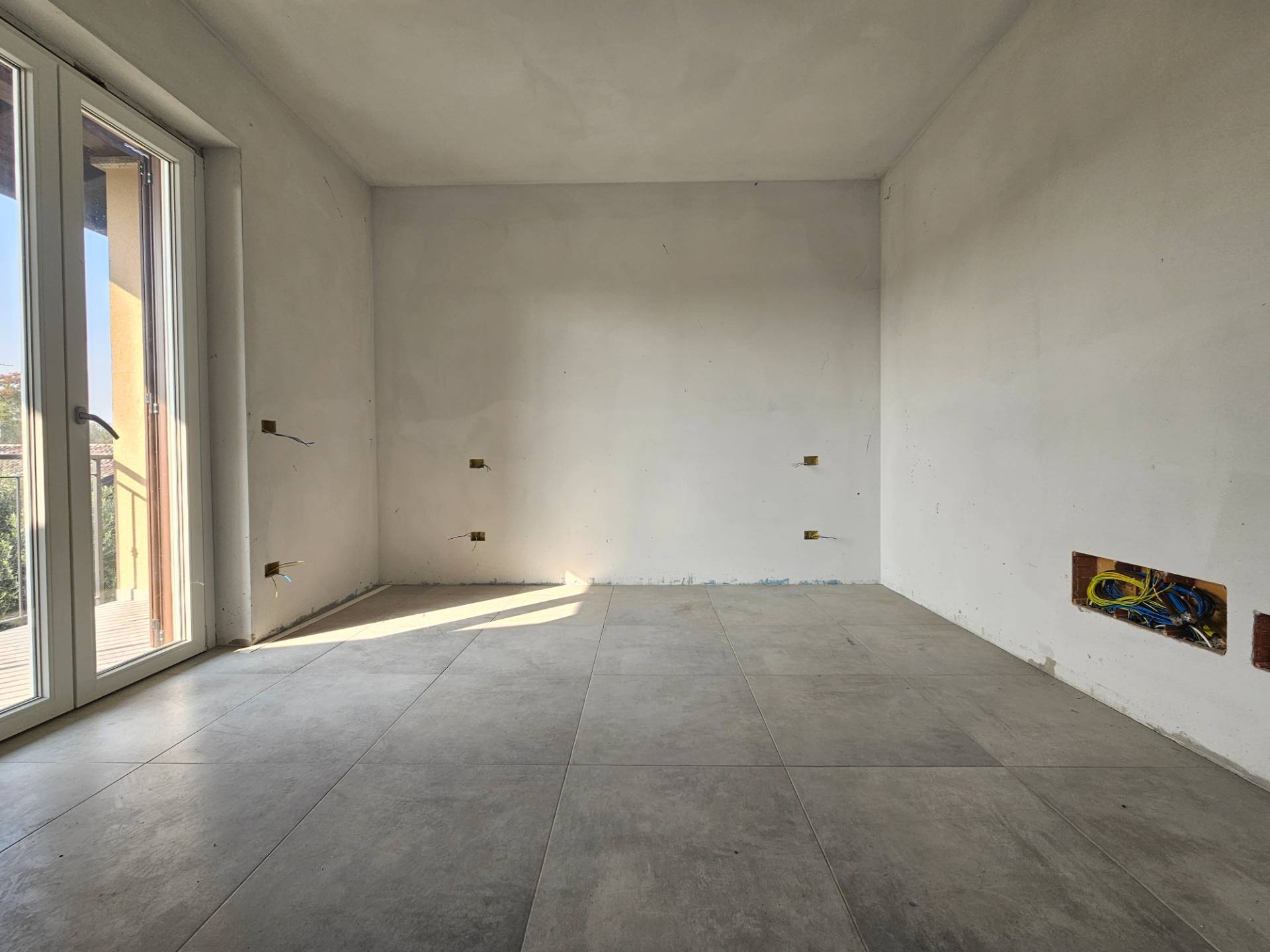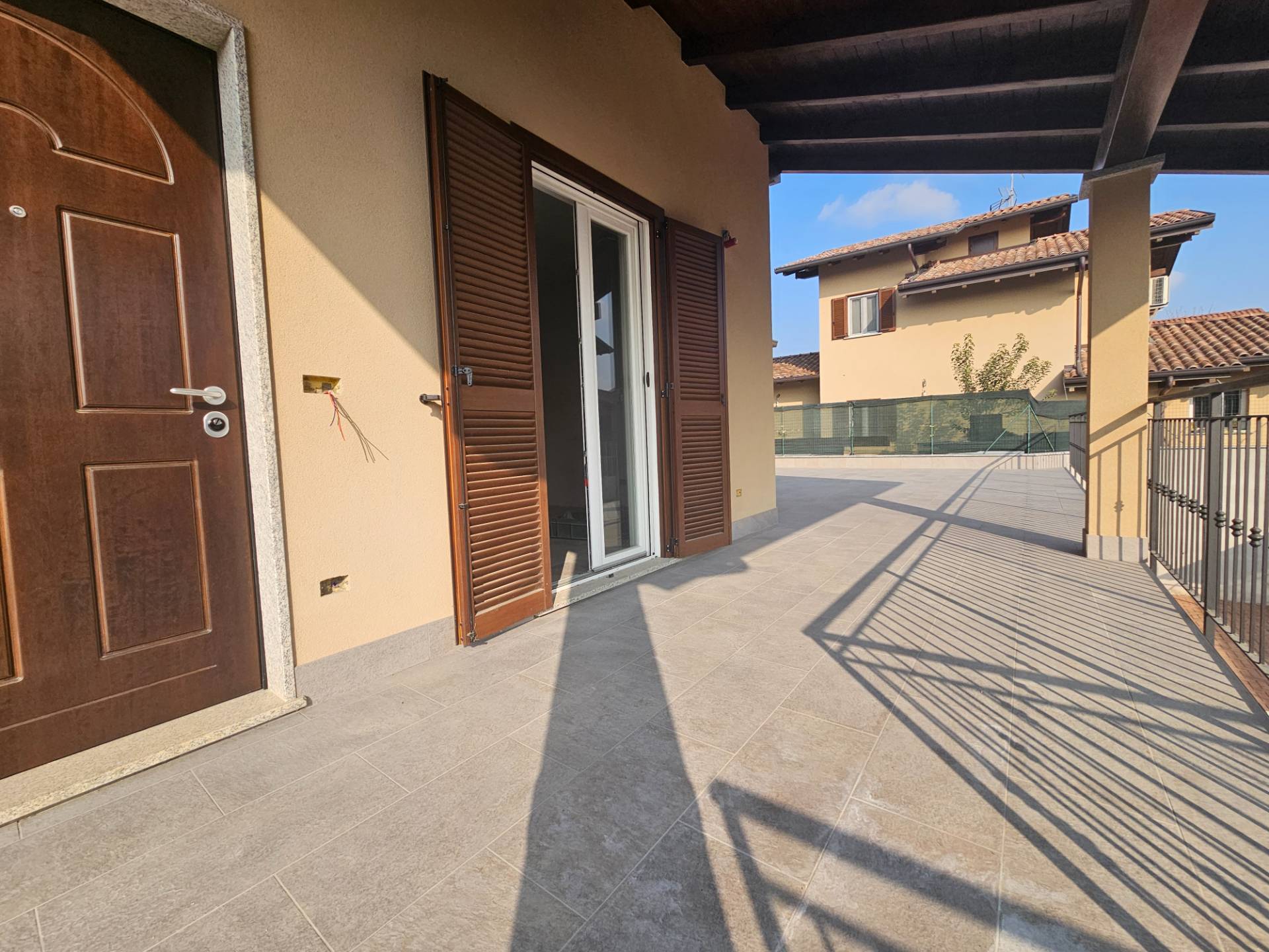 All'esterno, di fronte all'area box, la corte rifinita in autobloccanti crea un ulteriore spazio per dei posti auto interni alla propriet.