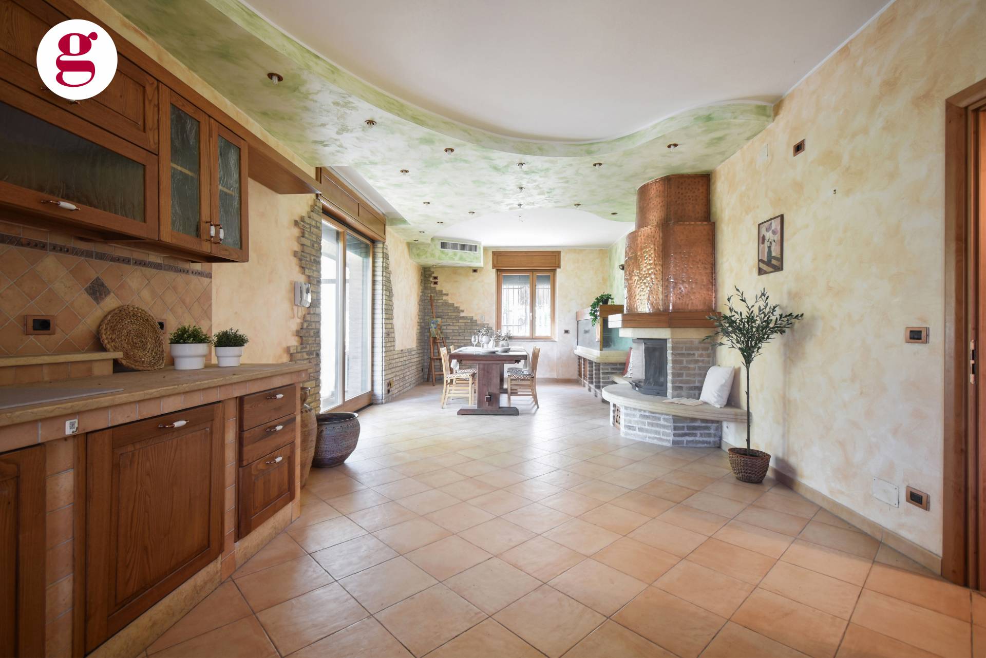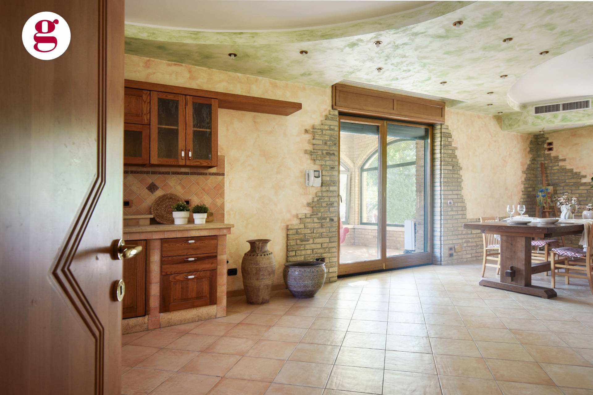 Il cuore pulsante della villa la splendida taverna al piano terra: un ambiente caldo e conviviale con una caratteristica cucina in muratura e un maestoso camino, ideale per cene in famiglia o serate con gli amici.