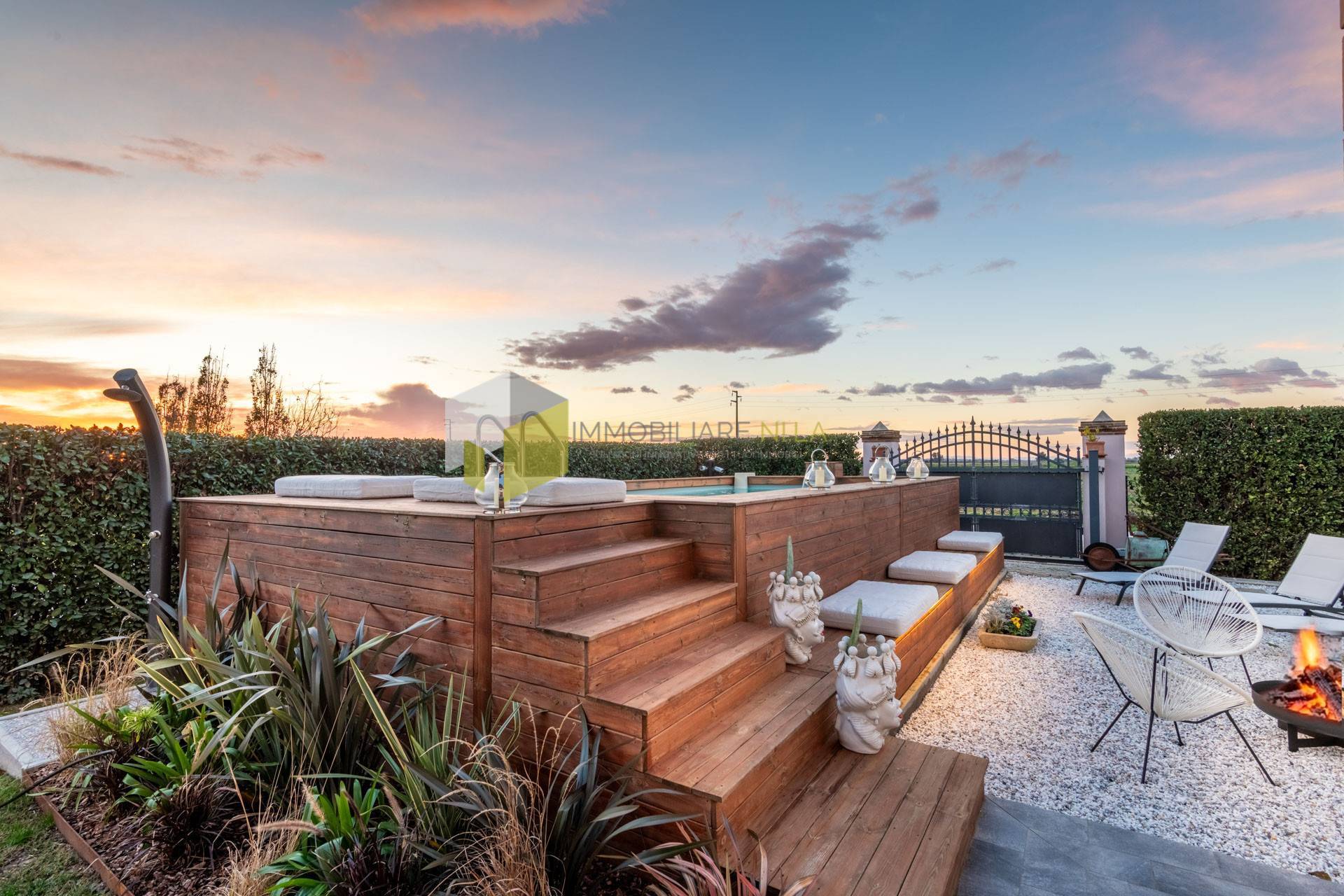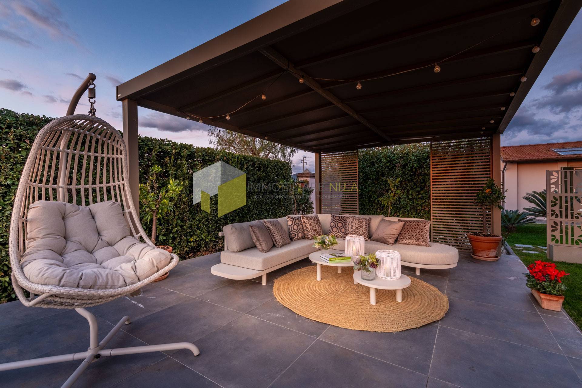 Il giardino estremamente curato, offre unoasi di eleganza e raffinatezza con la moderna piscina, il pergolato per piacevoli momenti di relax e le aree destinate al parcheggio delle auto. Il terreno costituisce il naturale contorno a questa bella propriet inserita tra campi a perdita docchio e offre un profumato campo di lavanda, un caratteristico uliveto e un rigoglioso frutteto.