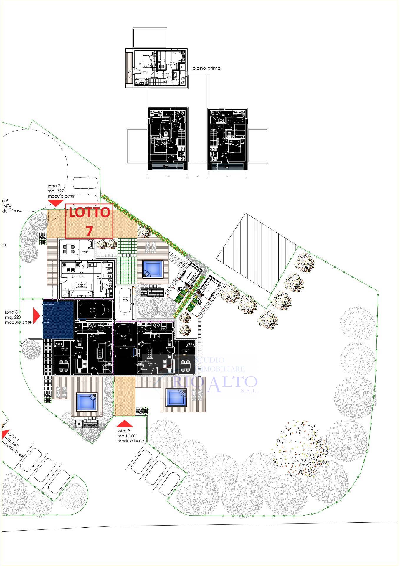Completano la villa un box singolo e una pompeiana di circa 15 mq. Il progetto abitativo modulare e consente di ampliare in futuro la zona giorno, aggiungendo ulteriori camere, ideale per genitori o familiari che desiderano vivere vicino mantenendo per autonomia e comodit, grazie anche ai grandi giardini privati.
