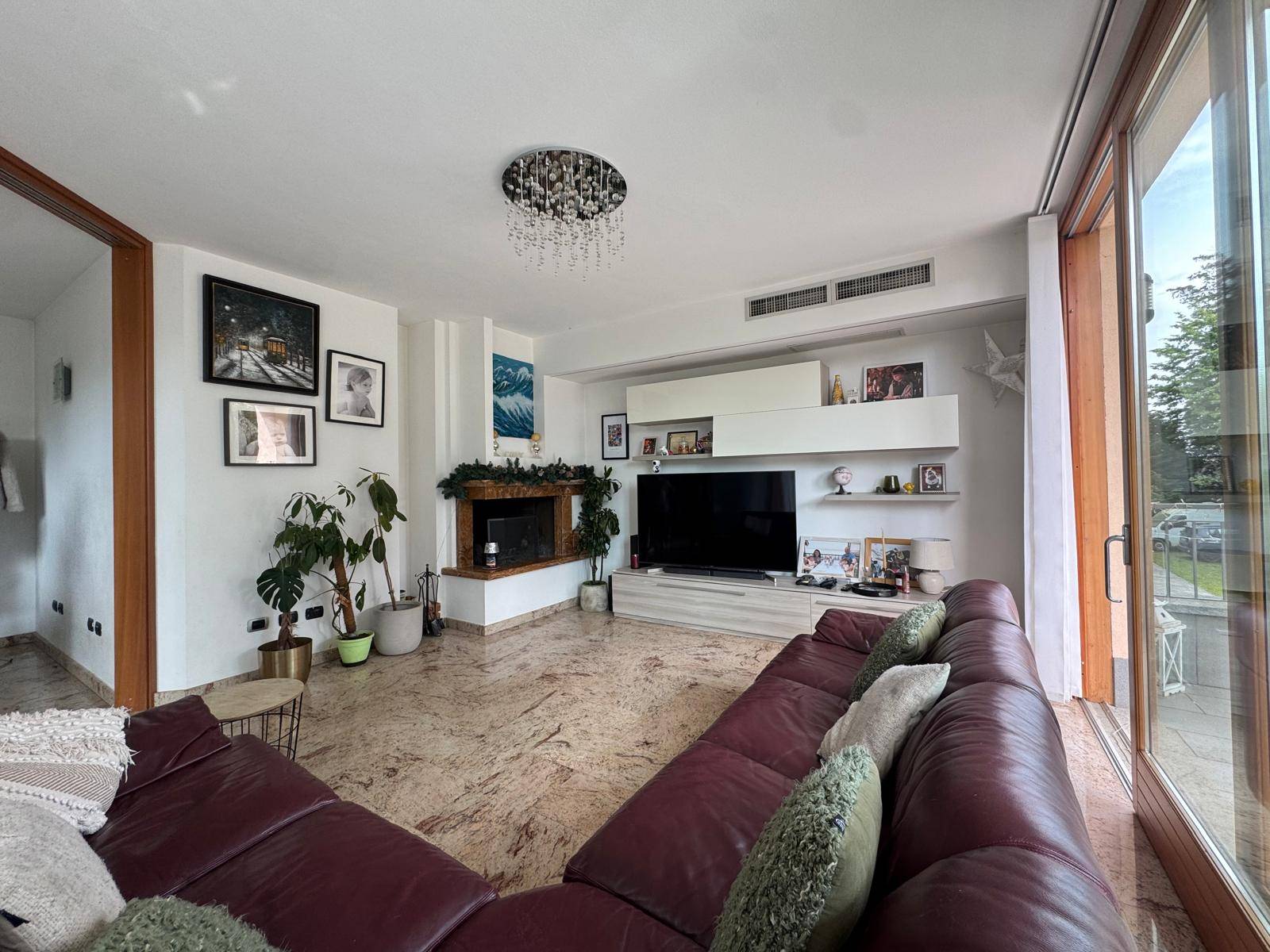 Il piano seminterrato, completamente fuori terra, offre un importante spazio living di circa 160 mq con camino bifacciale e grandi vetrate affacciate sul verde, oltre a ulteriori 120 mq di locali accessori con ripostigli, locale tecnico e doppi servizi, ideali per organizzare al meglio la casa e le esigenze della famiglia.