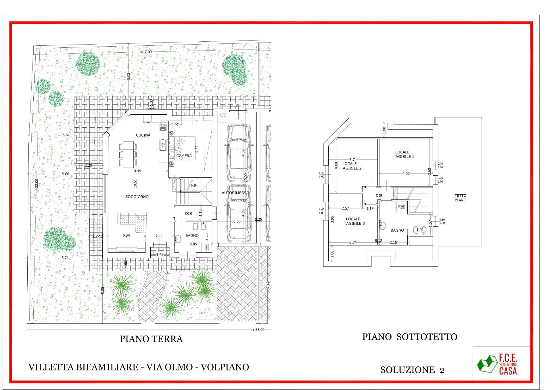 Ciascuno dei due lotti misura circa 400 metri quadrati e le ville potranno essere realizzate sulla base dei progetti indicativi qui rappresentati, personalizzabili a seguito delle esigenze dei clienti.