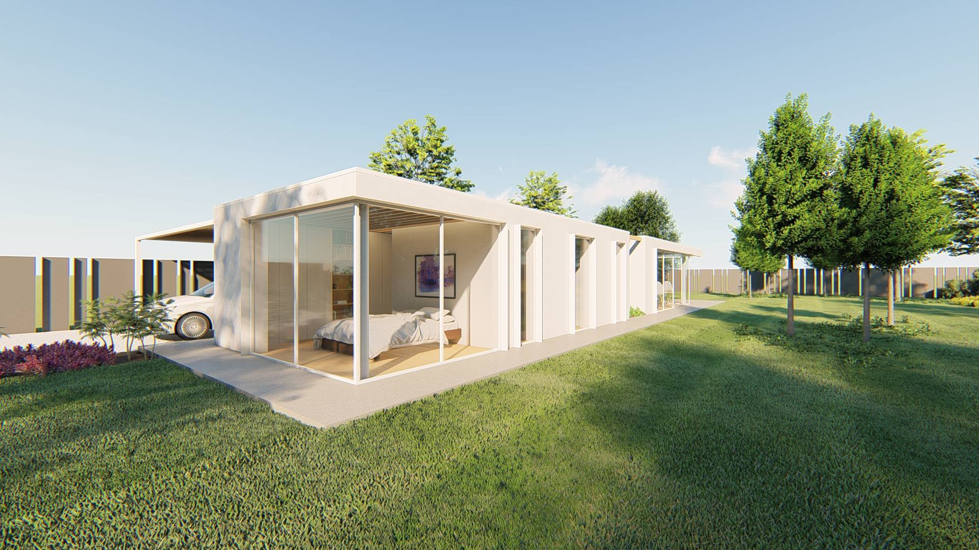 Realizzata in edilizia tradizionale, e con copertura in legno isolata e ventilata, la casa composta da un ampio open space che unisce pranzo e soggiorno, due camere, due bagni, la centrale termica/lavanderia ed unampia zona scoperta con giardino.