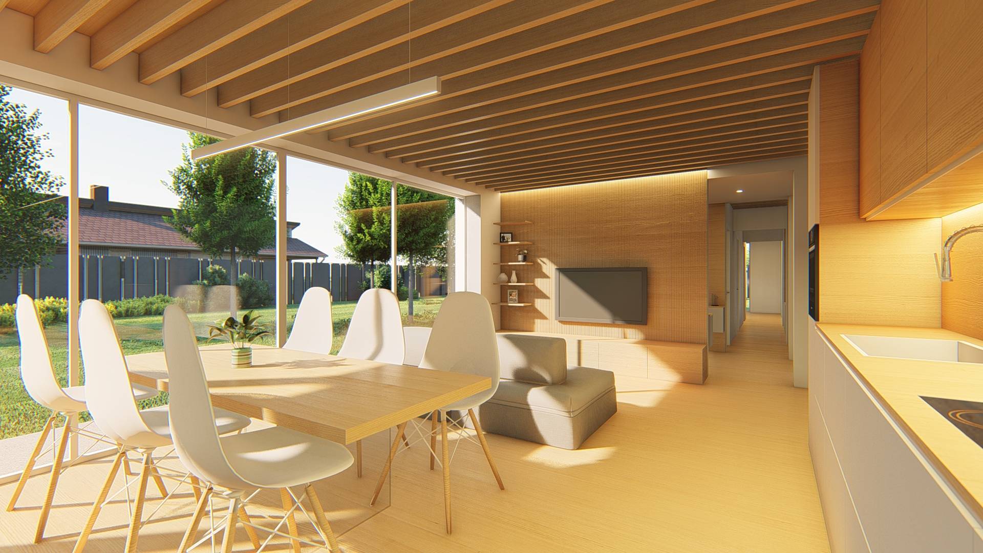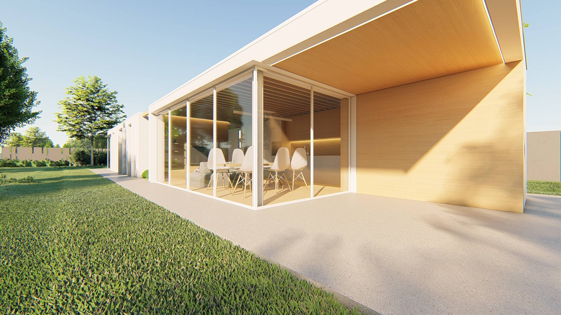 Realizzata in edilizia tradizionale, e con copertura in legno isolata e ventilata, la casa composta da un ampio open space che unisce pranzo e soggiorno, due camere, due bagni, la centrale termica/lavanderia ed unampia zona scoperta con giardino.