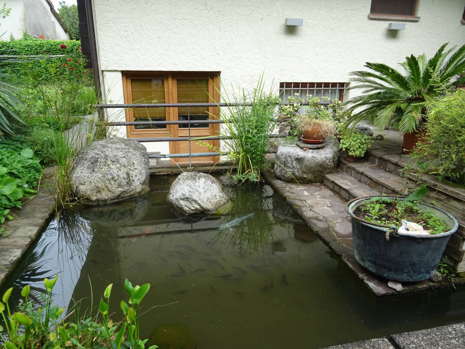 L'immobile, di pregio, ha un ingresso pedonale impreziosito da una piccola piscina ornamentale.