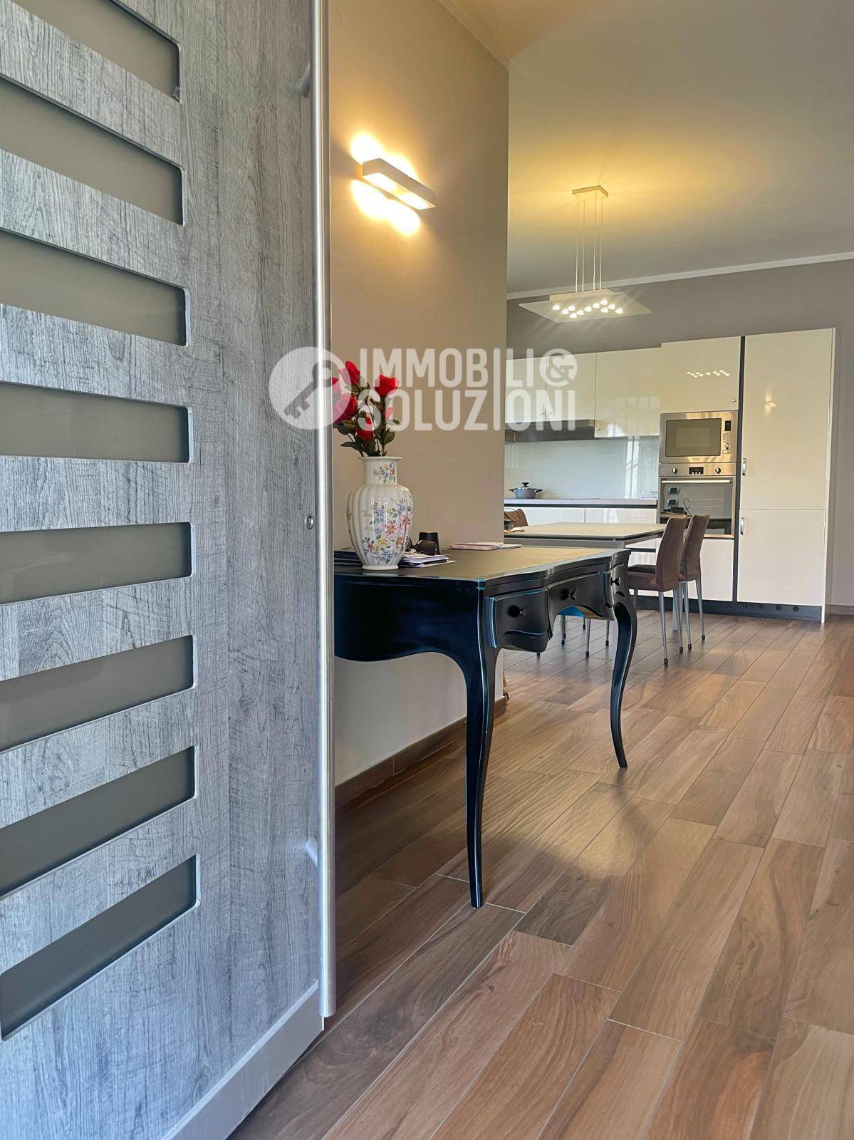 La disposizione interna risulta cosi composta da : ingresso su ampio soggiorno con cucina a vista e sala da pranzo, disimpegno notte, bagno con zona lavanderia, tre camere da letto, di cui una con bagno privato.