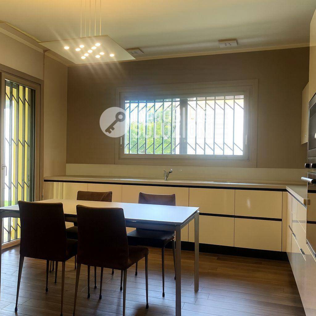 Circondata da un grande giardino privato, la villa si distingue per lo stile moderno e le ampie vetrate scorrevoli che donano luminosit alla zona living, con accesso diretto al porticato e al verde esterno.