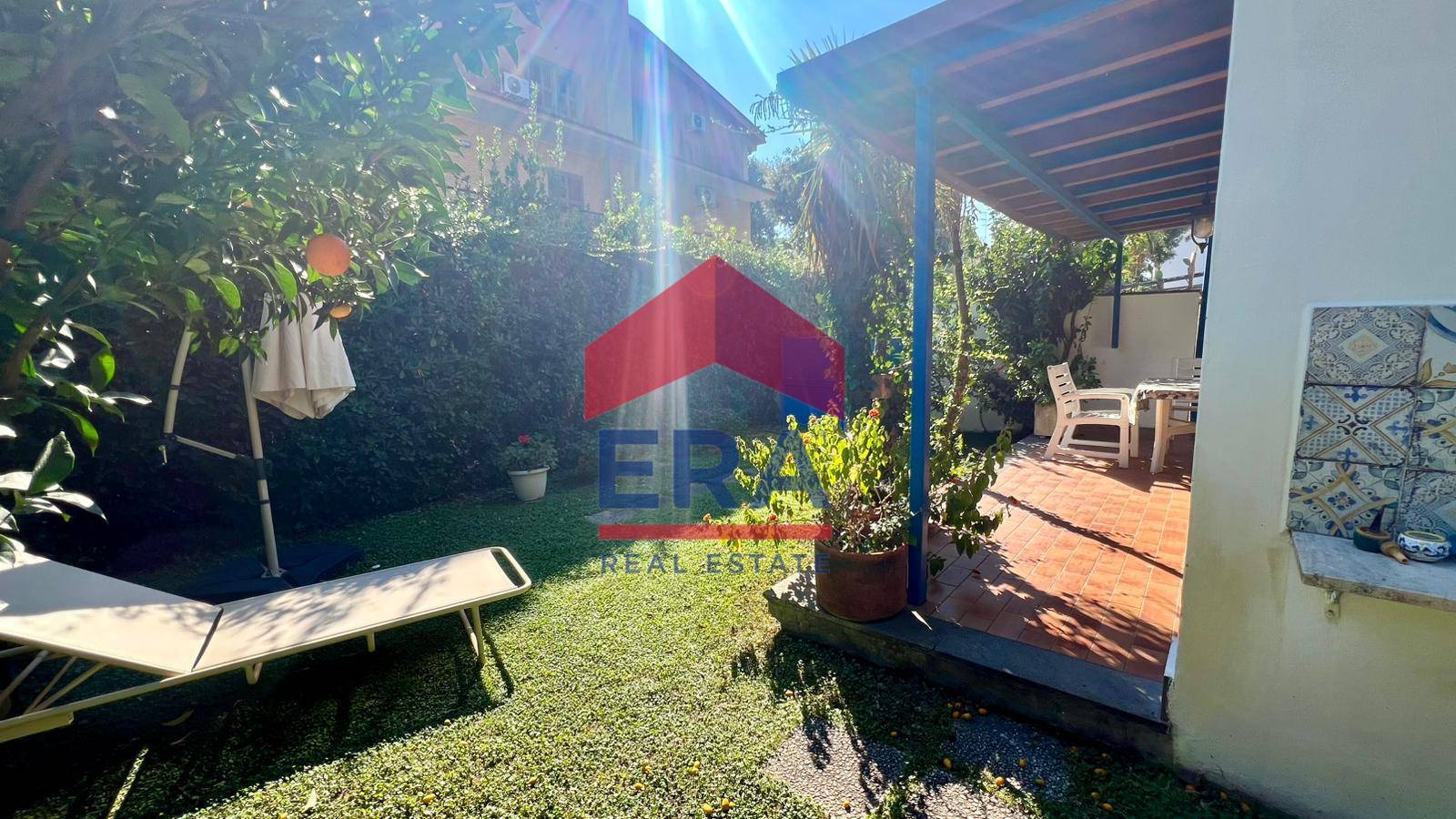 Fregene- Via Falconara- Villino a schiera con giardino angolare A soli 400 metri dal mare, in una posizione strategica nei pressi di Via Castellammare, proponiamo in vendita un villino a schiera angolare con un' ottima esposizione a sud-ovest e un box auto privato.