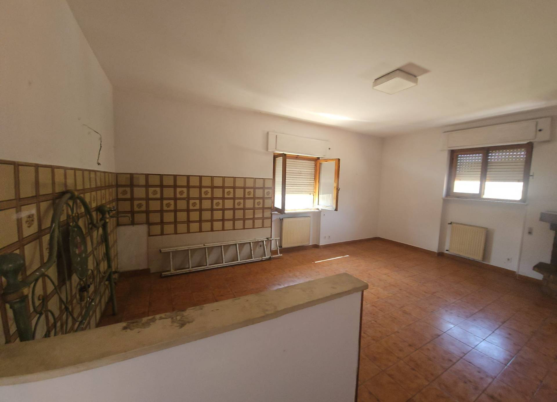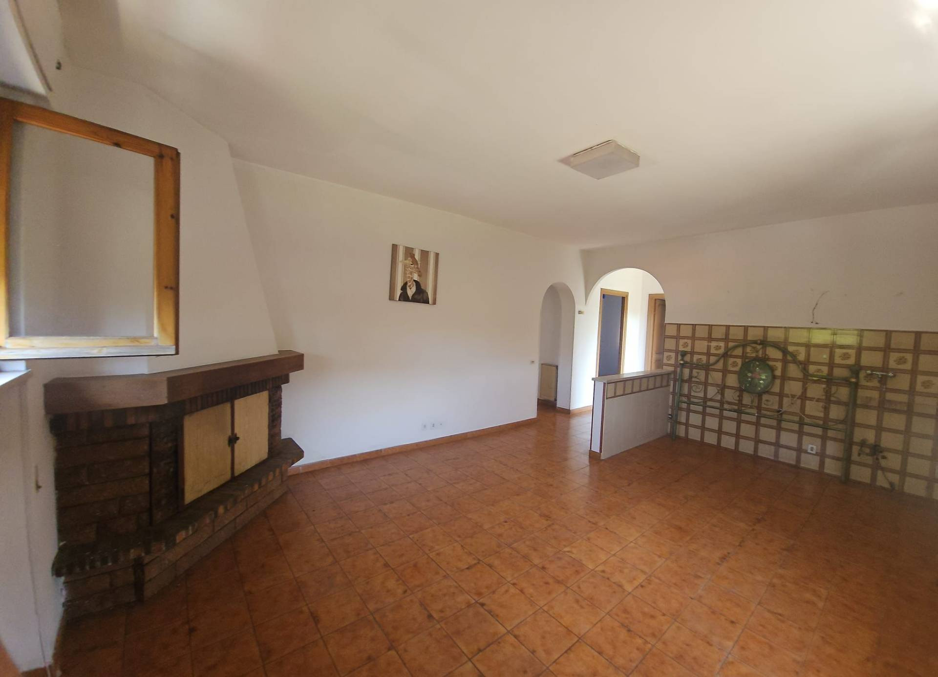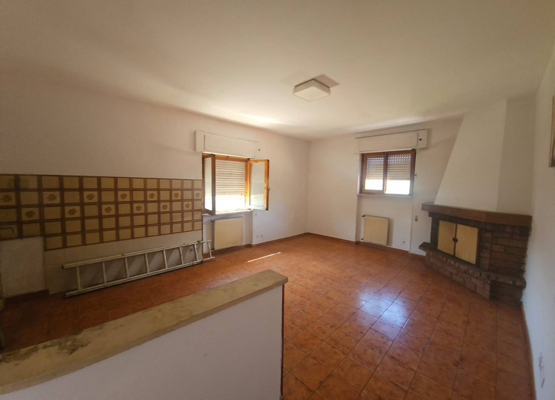 L'immobile situato al piano terra composto da un ampio e luminoso salone con camino e angolo cottura, due camere da letto, un bagno finestrato con vasca e un terrazzo.
