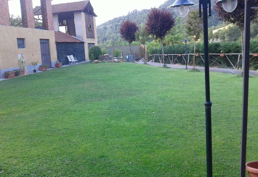 Davanti al fabbricato prato inglese e piazzale con gazebo e tavolone per mangiare all'aperto.