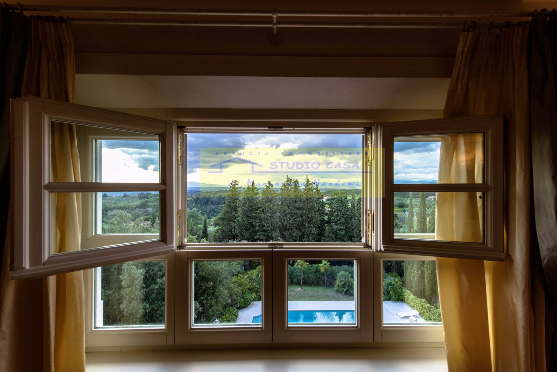 La villa gode di ampi spazi , una bellissima vista su tutti i lati ed una grande piscina . La villa composta da ampi saloni , una grande cucina abitabile dotata dei migliori elettrodomestici , camere e bagni , locali accessori . Realizzata come casa vacanze l'ideale per trascorrere le proprie giornate nella bellissima campagna fiorentina a pochissimi minuti dal centro di Firenze e vicino al mare , costa della Versilia . In vendita completamente arredato.
