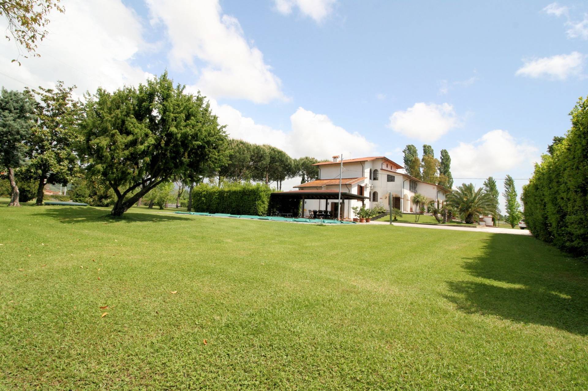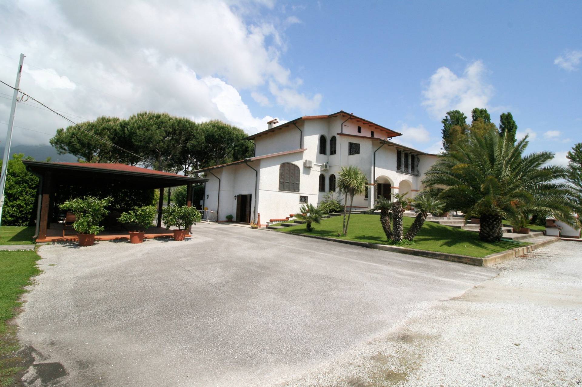Prestigiosa propriet adagiata nel verde della campagna di Pietrasanta a pochi chilometri dal mare, gode di una suggestiva vista panoramica sulle colline Versiliesi fino alle Alpi Apuane, immersa in unoasi di verde ben piantumato e mantenuto in perfetto ordine dagli attuali proprietari di circa 19.000 mq, sicuramente una propriet rilassante dove regna sovrana la pace e lassoluta ***.*******.** villa di circa 600 mq dispone di una grande piscina e di un solarium dove stato realizzato una grande tettoia in legno dove trascorrere ore di relax in compagnia di Amici e ***.*******.** superficie della villa attualmente ospita due nuclei familiari che vivono con propria indipendenza due porzioni distinte del fabbricato, il futuro acquirente potr scegliere di farne anche una sola prestigiosa dimora secondo le sue ***.*******.** porzione pi grande risulta disposta su due livelli fuori terra e precisamente al piano terra rialzato e primo, al piano terra si accede da un ampio porticato e allinterno si compone di piccolo salottino che funge da zona accoglienza per gli ospiti, attraverso una bella porta a vetri si entra nella zona giorno dove fa sfoggio della sua bellezza un camino con antistante zona divani, zona pranzo e cucina a vista, bagno di servizio al piano; A piano primo troviamo un soggiorno/studio, tre camere, bagno con doccia e locale pluriuso.