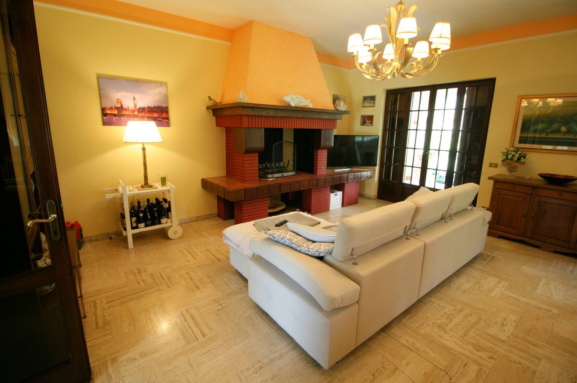 La porzione pi piccola della villa si estende al piano seminterrato comoda per laffaccio diretto alla zona esterna dove si trovano la piscina, il forno a legna e il barbecue in questo piano trovano spazio un soggiorno, una spaziosa taverna e un bagno; il piano terra rialzato composto da soggiorno/sala da pranzo, cucina, due camere e un ***.*******.** propriet in condizioni manutentive ottime perch stata curata e ben mantenuta negli anni dai proprietari.