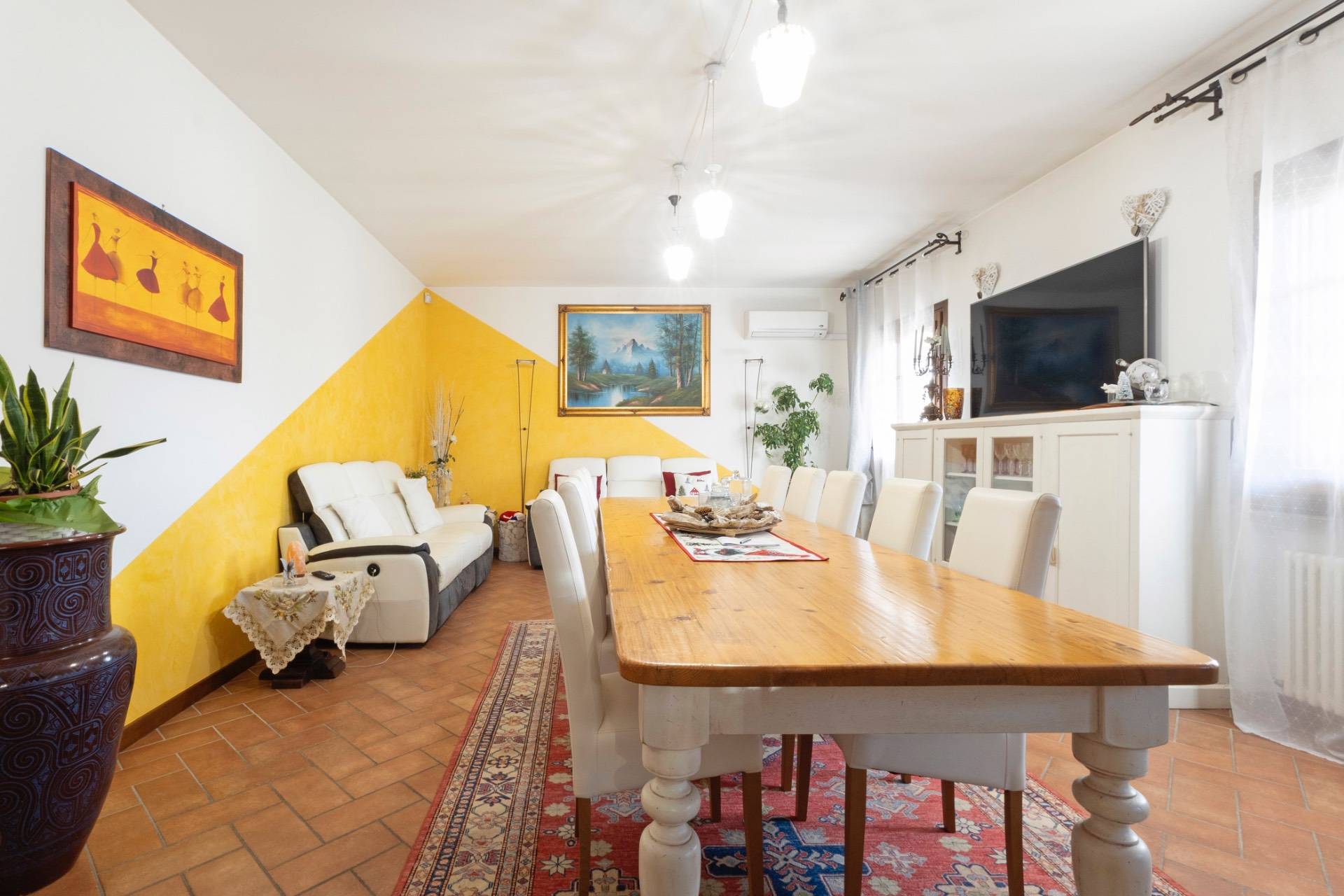 Ogni ambiente climatizzato con pompa di calore, il riscaldamento garantito da un sistema misto con pavimento radiante parziale, termosifoni e due stufe a pellet, mentre leccellente isolamento dellimmobile assicura una temperatura interna costante sia in estate che in inverno, riducendo al minimo la necessit di riscaldamento o raffrescamento.