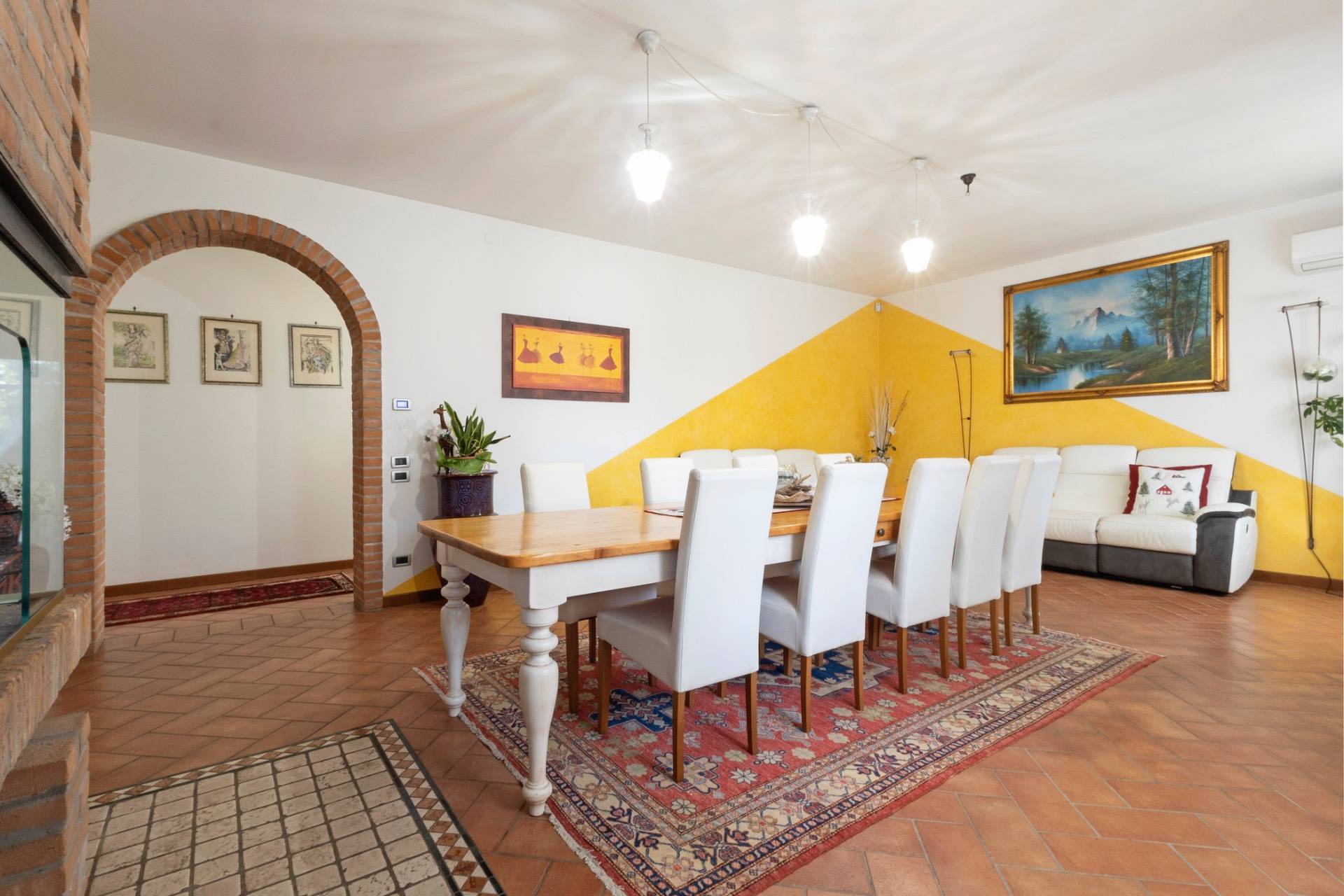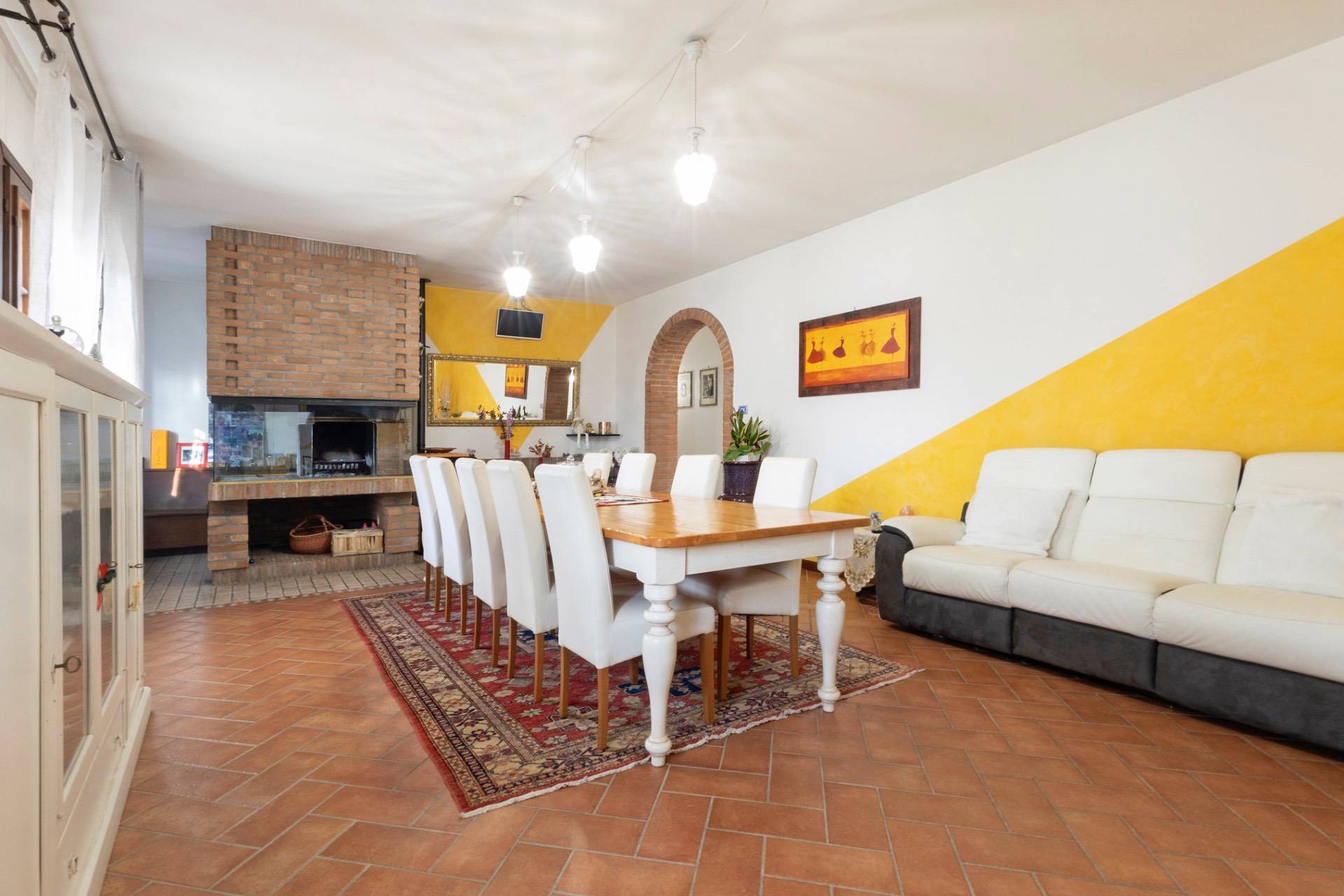 Laccesso avviene attraverso un ingresso ampio e luminoso che introduce agli ambienti principali, dove troviamo una cucina separata e abitabile, un raffinato soggiorno con sala da pranzo e caminetto in pietra refrattaria, progettato per creare unatmosfera calda e accogliente.