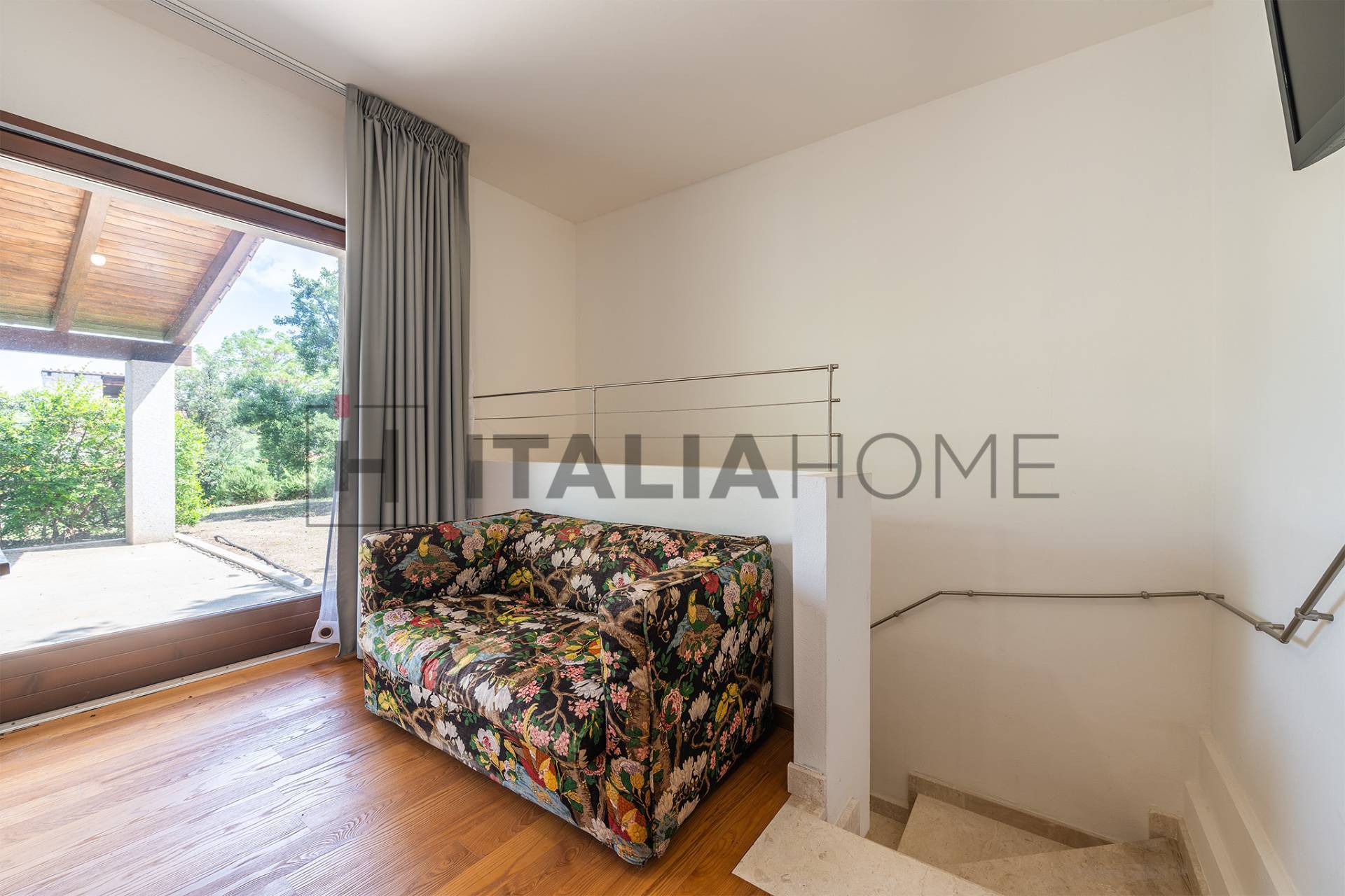 La villa completamente equipaggiata con impianti moderni (aria condizionata, riserva idrica, elettrodomestici), arredata con stile e mobilio in legno su misura e distribuita per garantire comfort anche per ospiti numerosi.
