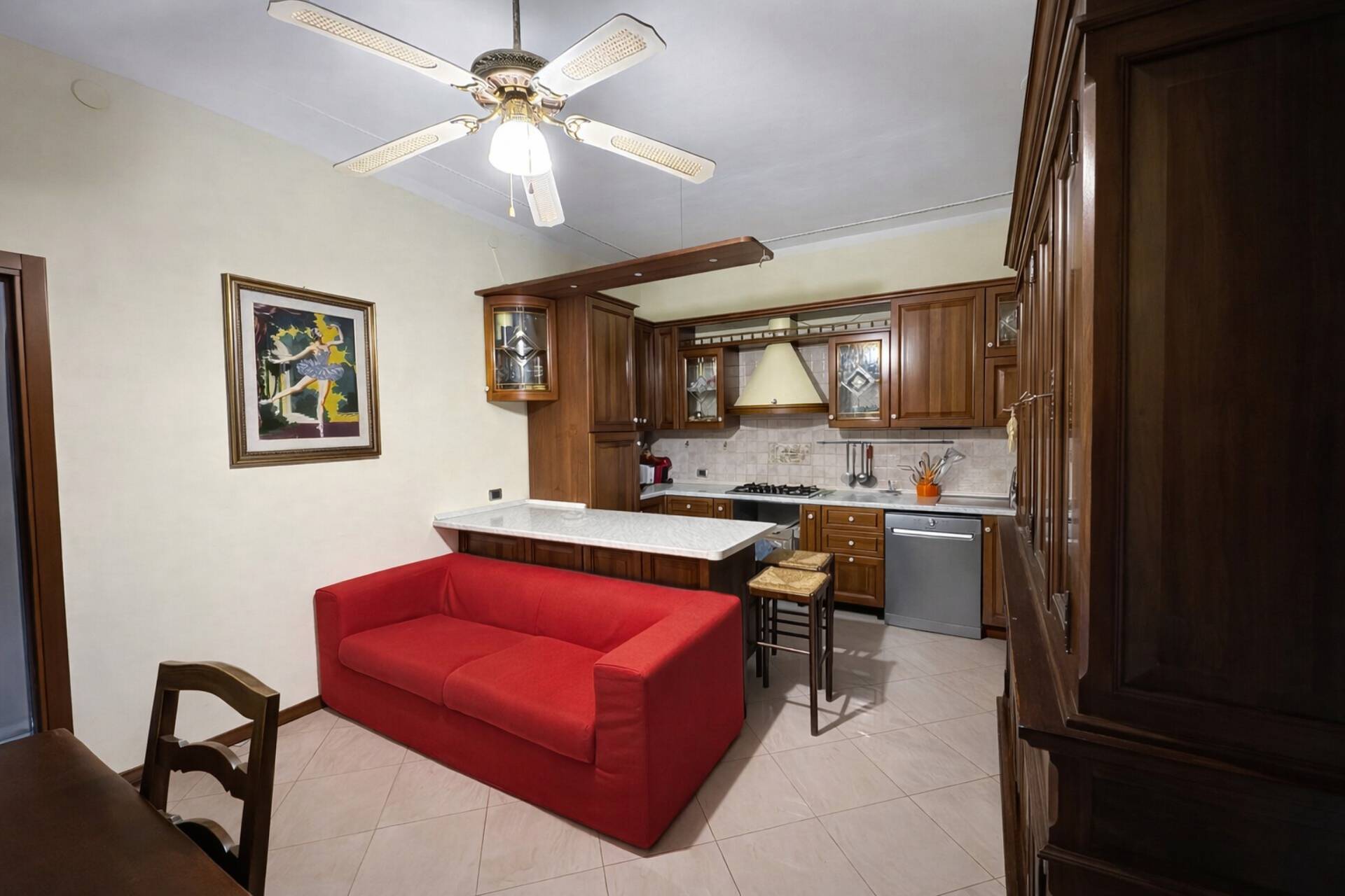 Posta su 3 Livelli, si compone al Piano Terra Rialzato da Ingresso Padronale, Soggiorno, Cucina Abitabile e Ripostiglio; al Piano Terra da Bagno, Lavanderia, Cantina e un'Ampia Taverna; al Piano Primo da 2 Camere da Letto Matrimoniali con il sistema di climatizzazione, Balcone, Studio e il 2° Bagno; al Piano Secondo da 3 Camere Da Letto Mansardate.