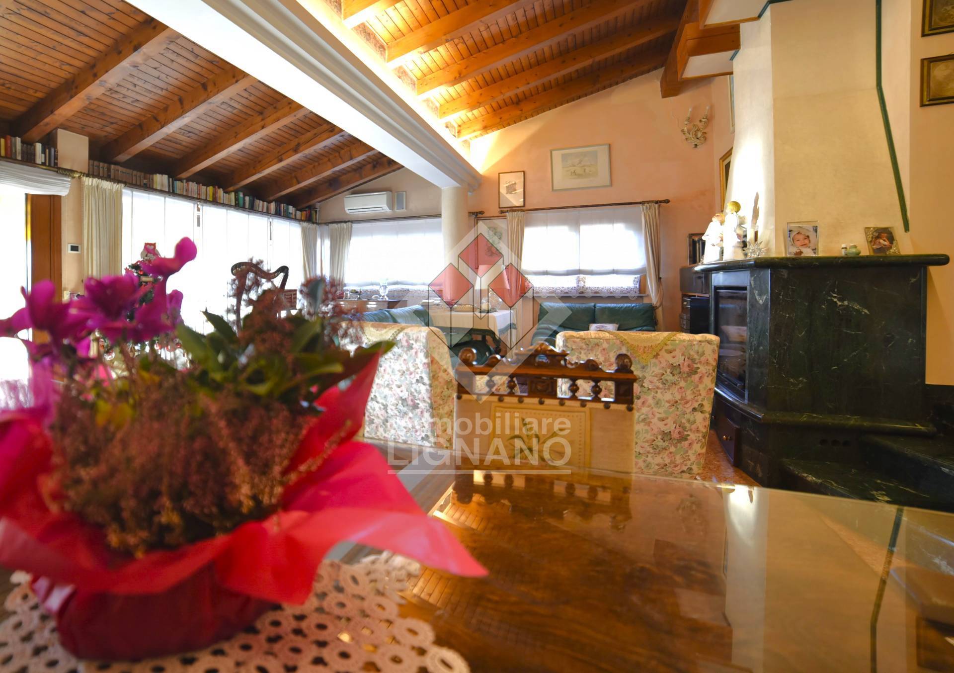 Gli spazi interni sono ampi e ben distribuiti, con un totale di 10 locali tra cui soggiorno, sala da pranzo, cucina abitabile e tre camere da letto e tre bagni pi uno studiolo mansardato con travi in legno a vista, all'occorrenza utilizzabile come camera per eventuali ospiti.