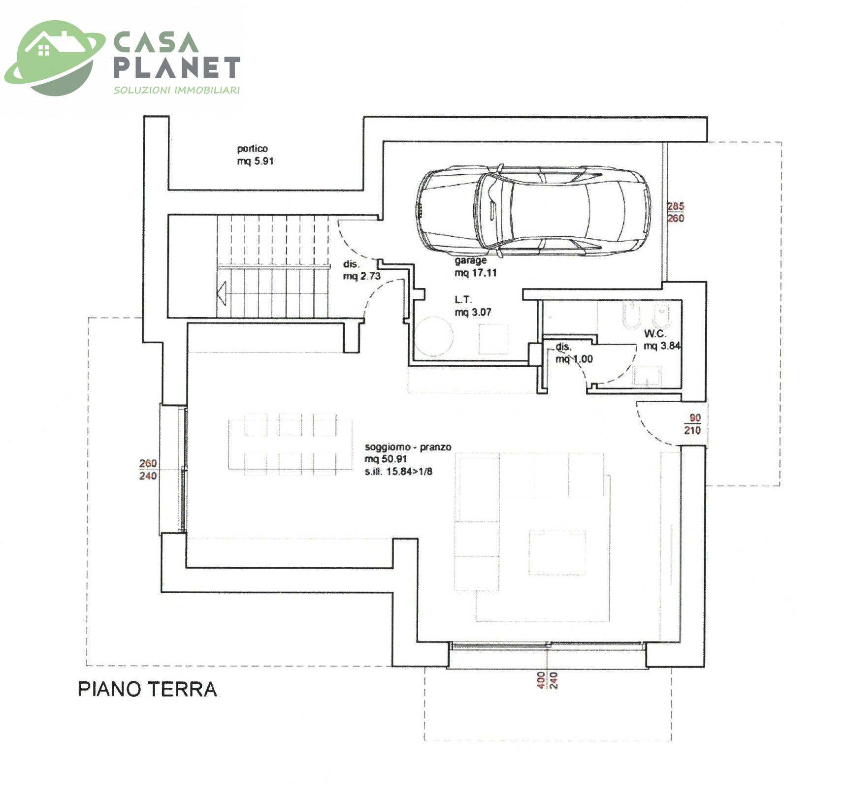 La soluzione in questione una villa singola con accesso indipendente, disposta su due piani abitativi con giardino privato di 500 mq. L'immobile libero su quattro lati ed cos composto, zona esterna con generoso portico coperto, si accede alla villa da un ampio e luminoso ingresso con soggiorno ed angolo cottura di oltre 50 mq., bagno ed un locate tecnico.