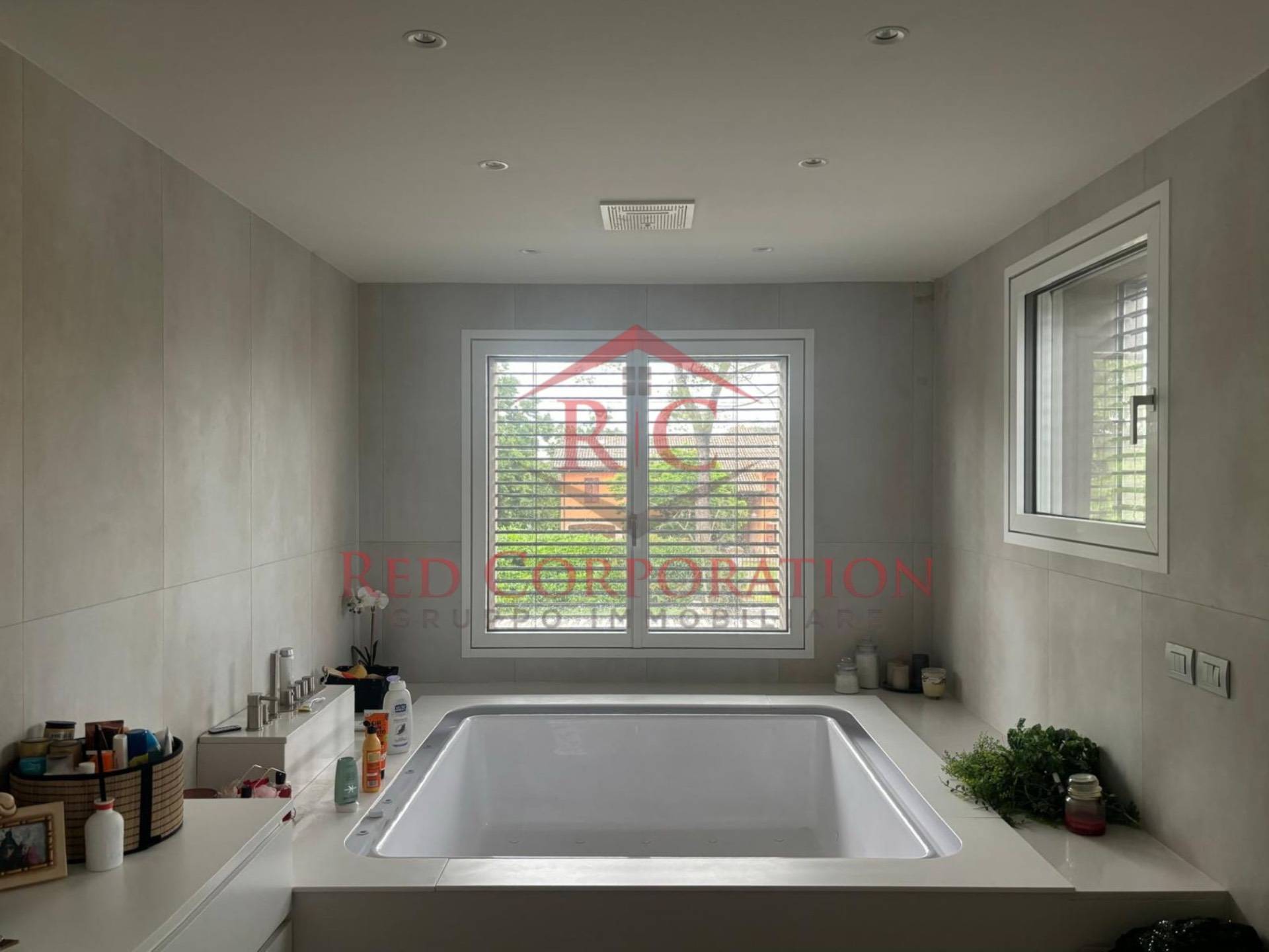 Al primo piano la zona notte si compone di due camere padronali di dimensioni generose entrambe con doppia cabina armadi, bagno e terrazzo, al piano secondo altro vano adibito a palestra/studio.