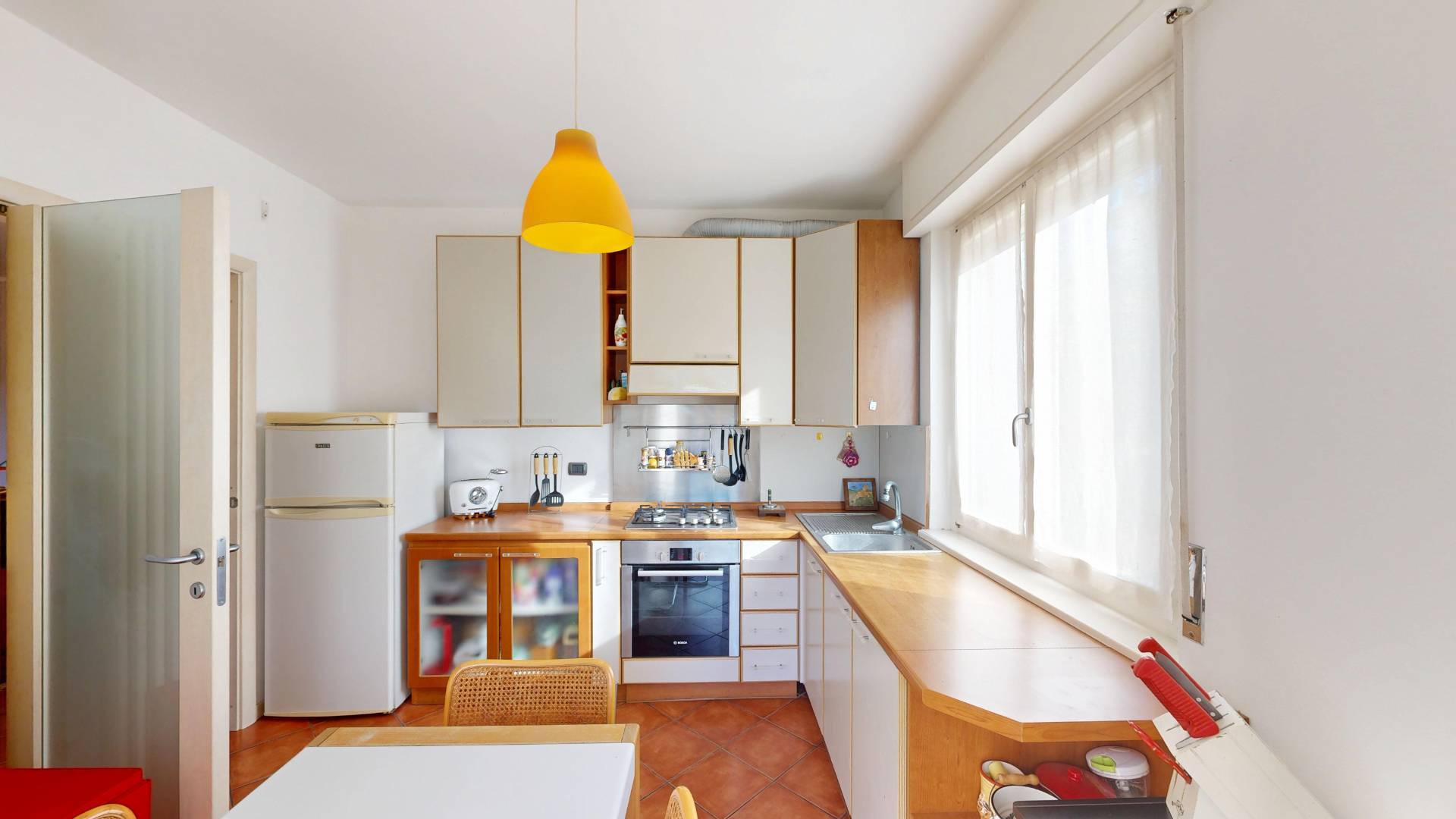 La cucina, ampia e ben strutturata, illuminata da unampia finestra in prossimit del lavello e da una portafinestra che conduce al terrazzo.