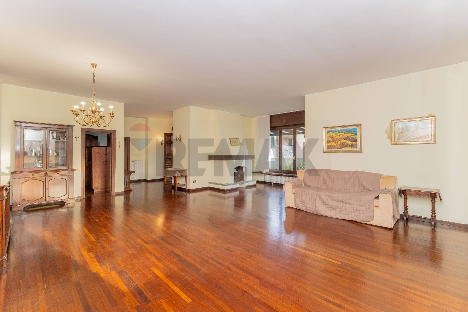 L'ingresso principale conduce ad un soggiorno doppio impreziosito da un grande camino dove trascorrere momenti di relax con la famiglia e gli amici, dotato di ampie finestre con doppi vetri in legno che garantiscono un'ottima luminosit naturale e una gradevole vista sul verde circostante; sullo stesso piano si trovano locali utilizzabili come camera da letto o come zone dedicate a studio o ufficio, oltre a tre bagni.