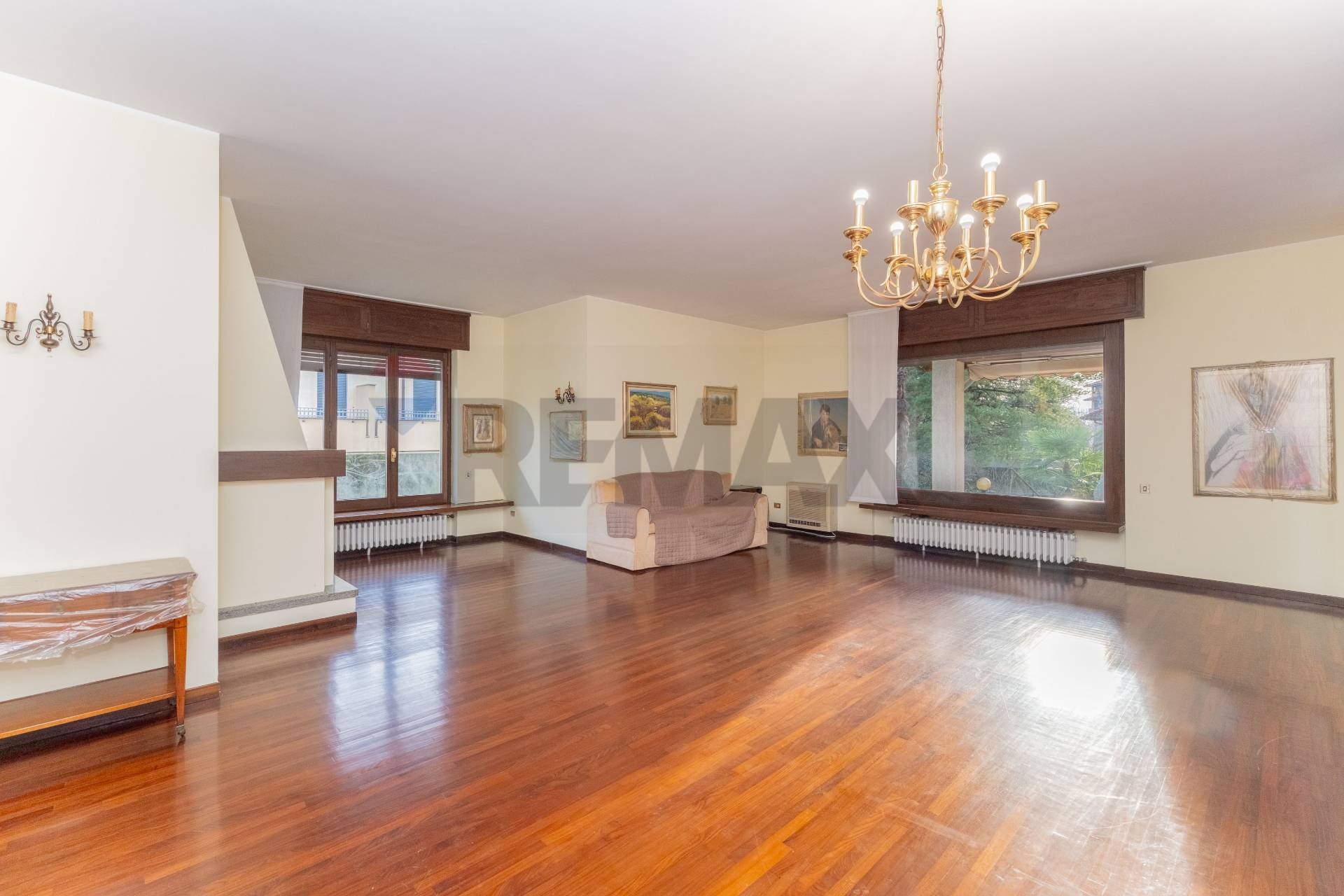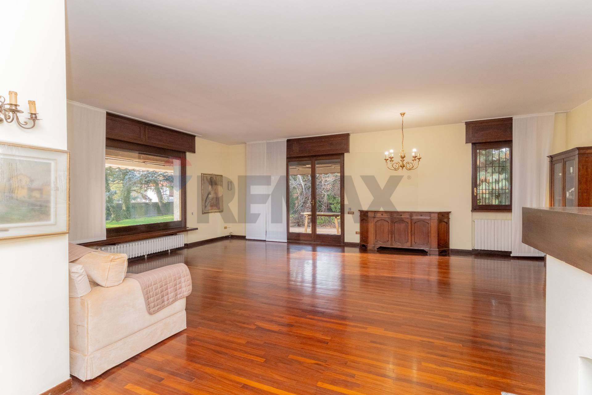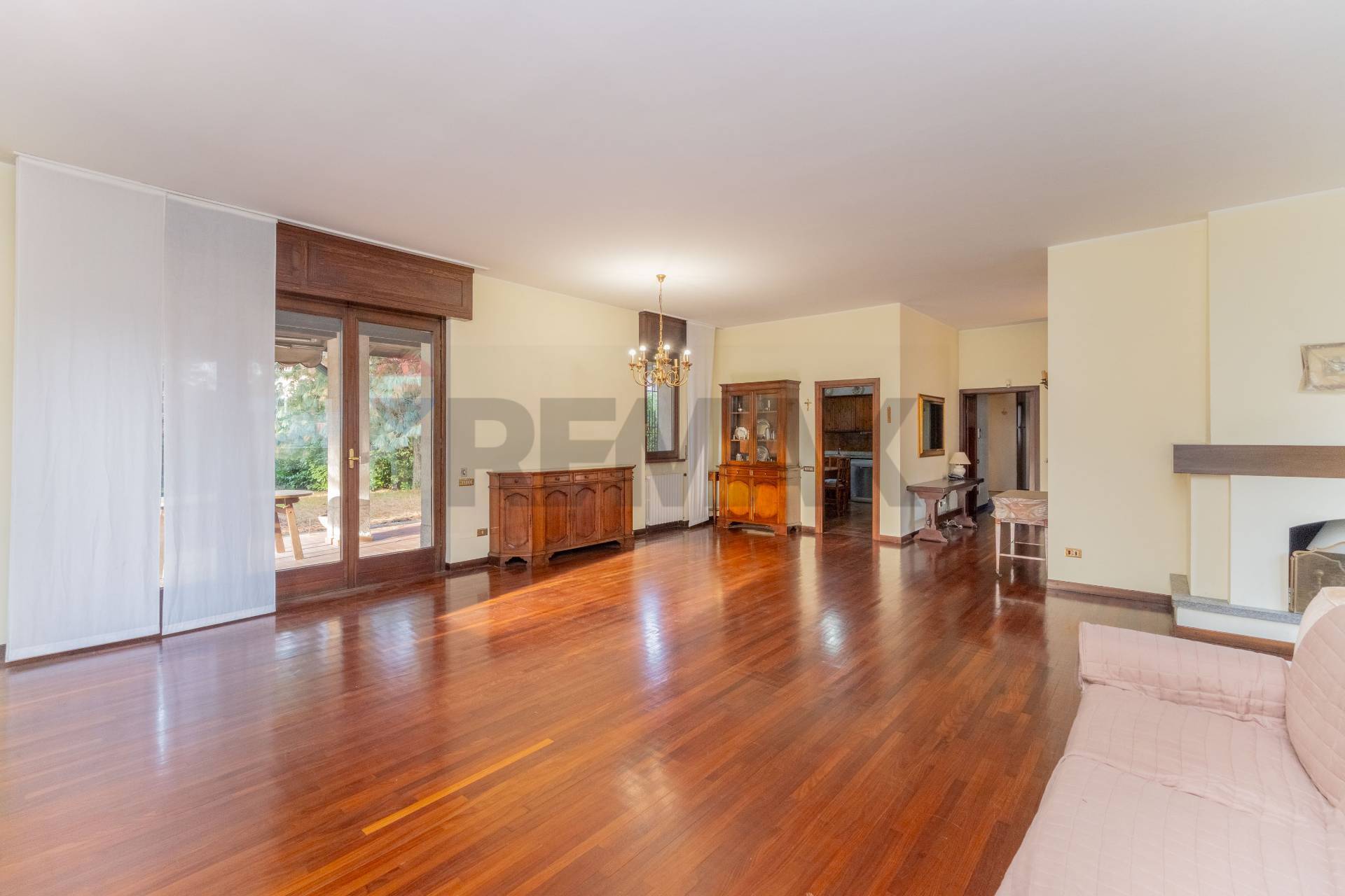 Questa bellissima villa singola di ampie dimensioni si trova a Parabiago immersa in un grande giardino con piante secolari.
