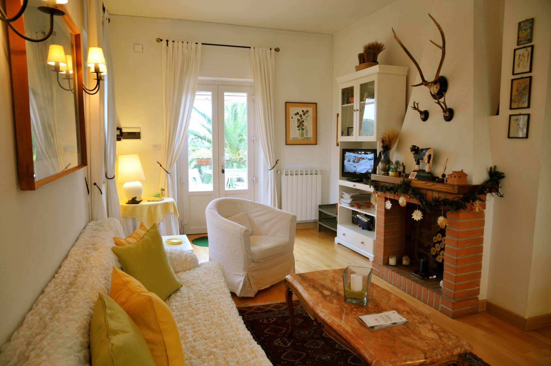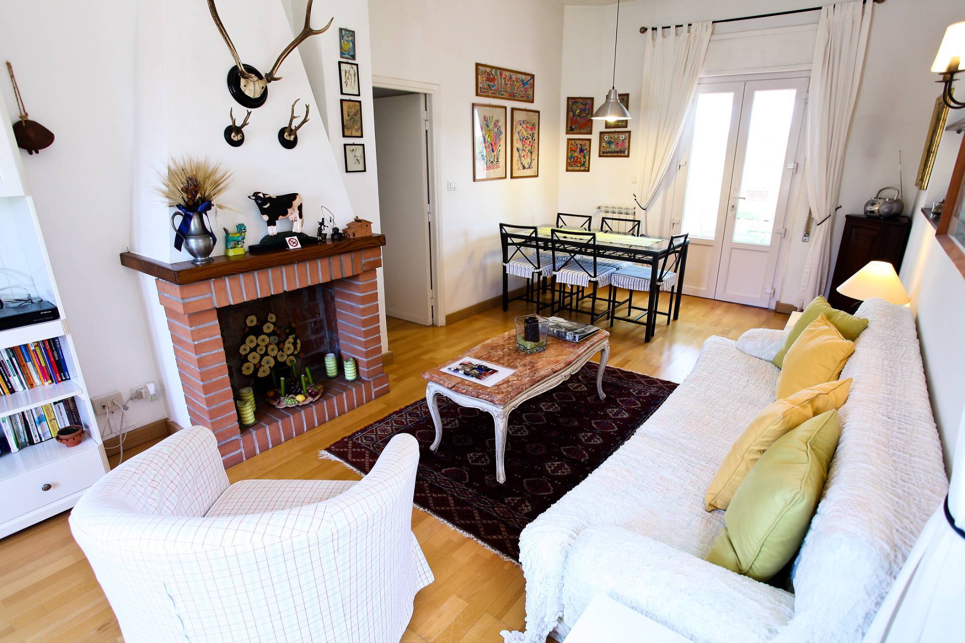 Appartamento 3, circa 90 mq mq composto da salone con camino, due camere da letto e bagno.