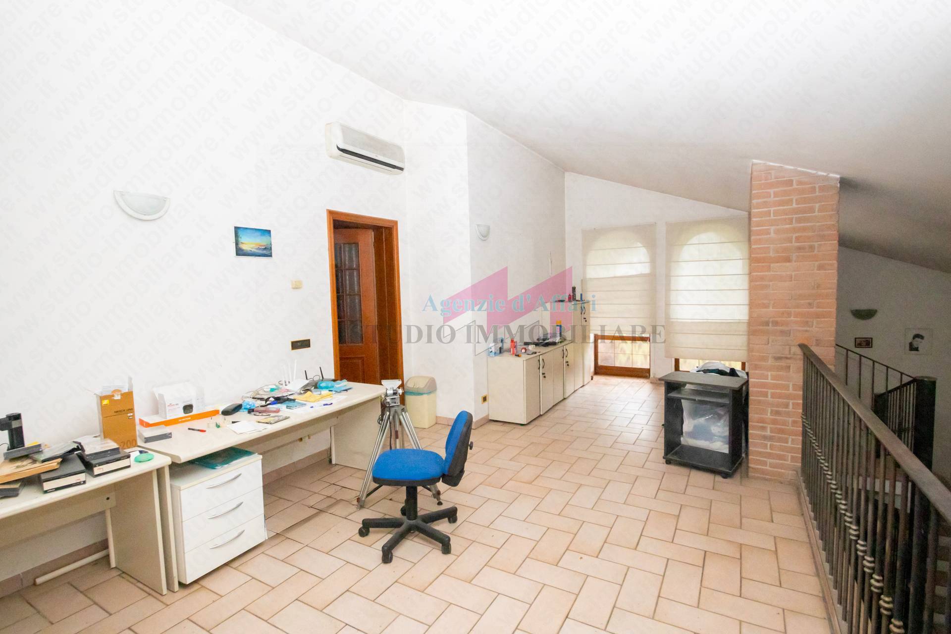 Dalla scala si accede al soppalco, la zona notte composta da tre camere da letto, un bagno con vasca, e un ripostiglio.
