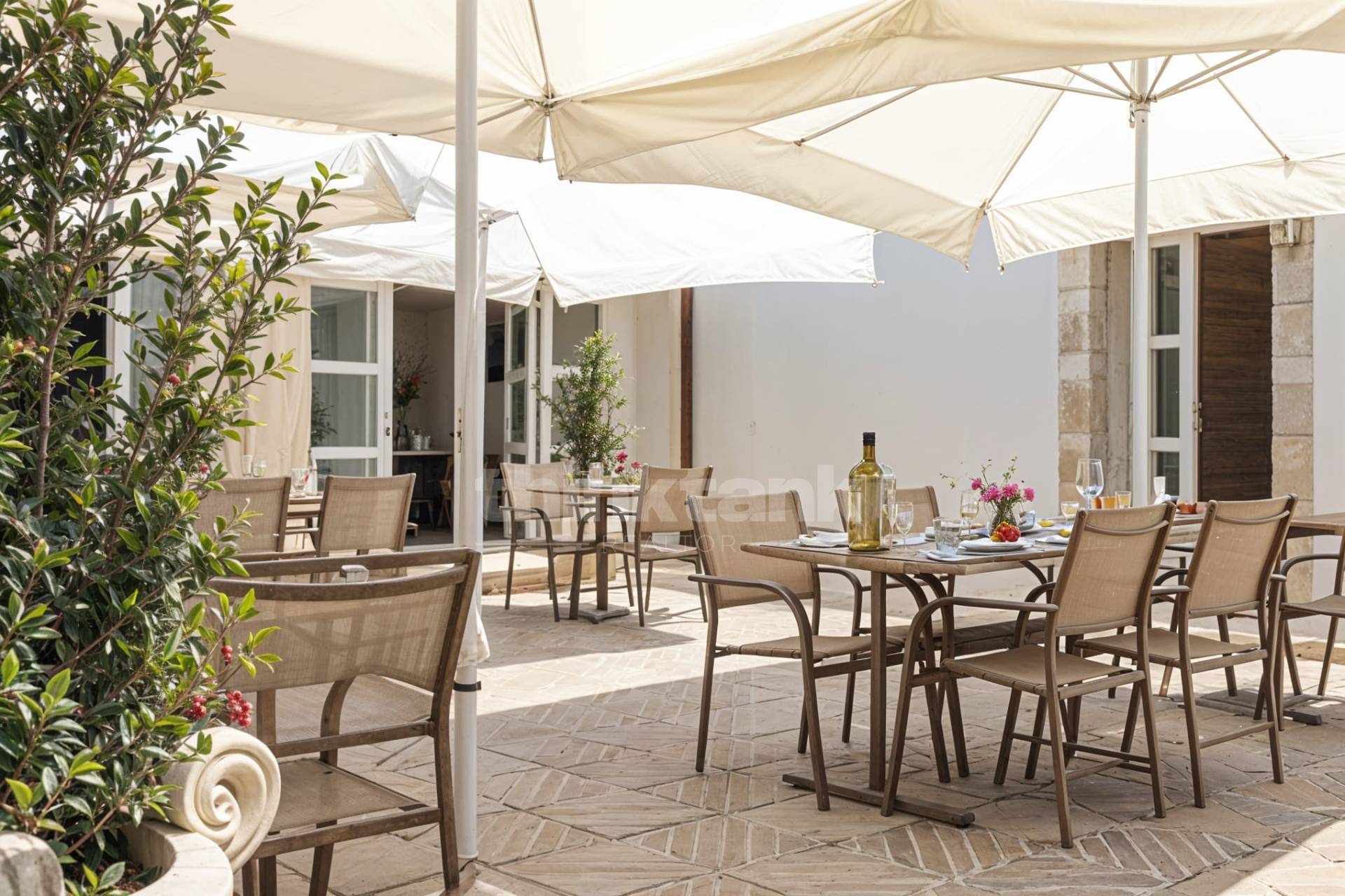 I restanti edifici raggiungono un totale di 800mq suddivisi tra sei appartamenti di taglio e dimensione diversa riservati agli ospiti e ai familiari, uffici, locali tecnici, una grande cucina industriale, una zona dedicata allarea lounge, una luminosa sala dedicata alle colazioni e alla sala da pranzo, e un elegante patio interno impreziosito dalla presenza di un angolo per il forno.