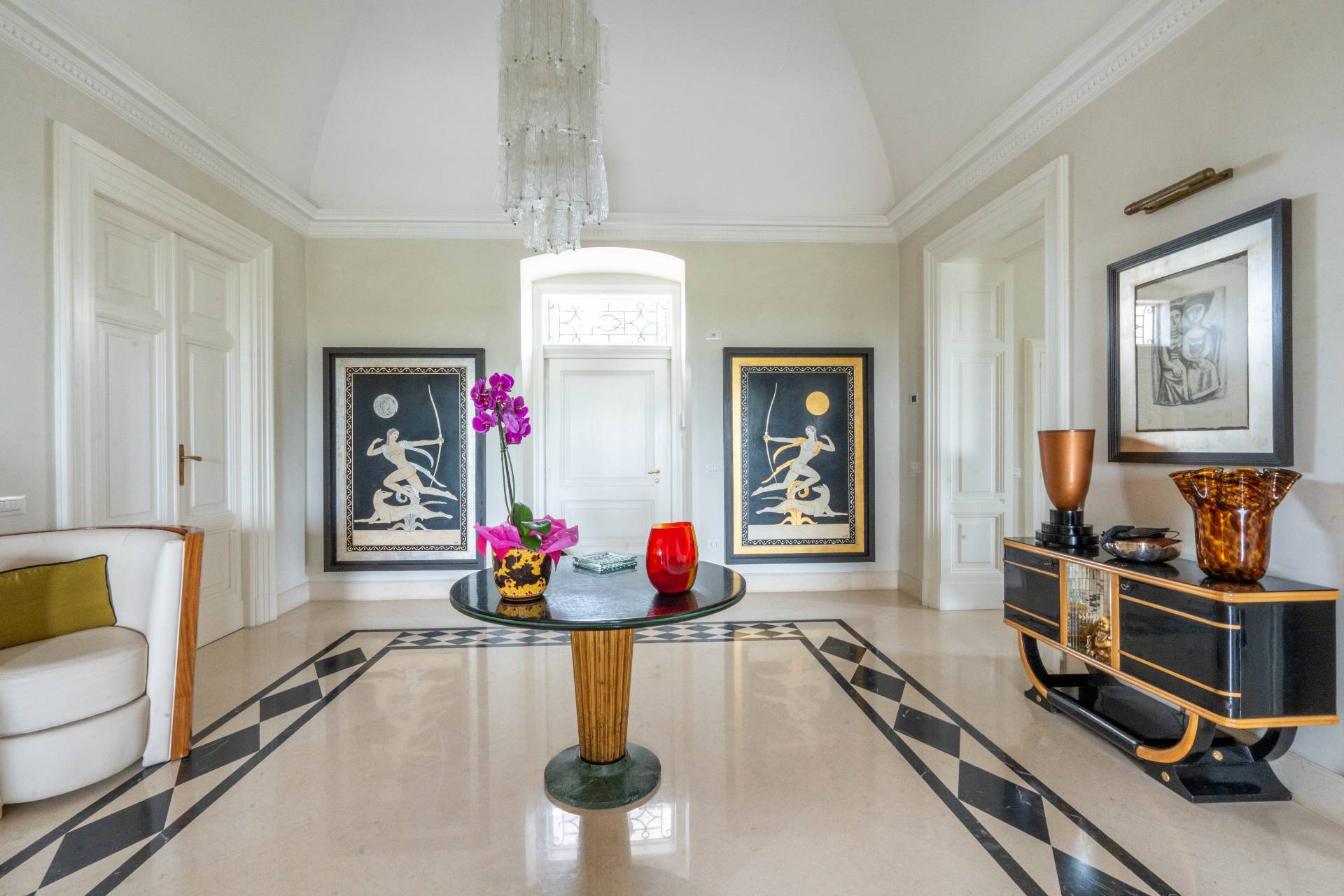 Sviluppata su 3 livelli per un totale di 700 mq, questa villa di lusso a un passo dalle mille sfumature del mare della Terra di Bari. La villa, con una facciata che richiama i castelli medievali, presenta una loggia rinascimentale con colonne in pietra bianca e doppie scale che conducono agli ingressi del piano nobile.