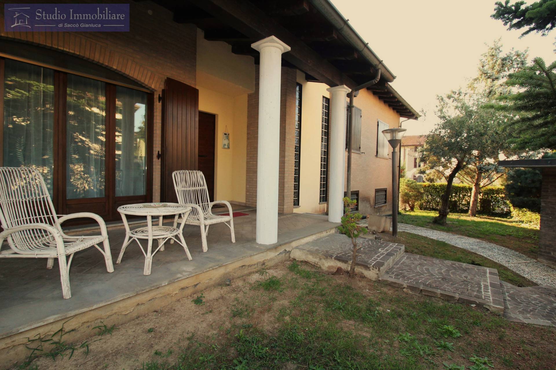 Prestigiosa villa indipendente disposta su unico piano in vendita a Torrazza Coste (nella prima fascia collinare dellOltrepo Pavese), edificata nel 98 e costituita al piano terra da ingresso mediante un ampio porticato, ed una zona living caratterizzata da doppio salone con camino ed una cucina abitabile, una dolce scala sopraeleva la zona notte contraddistinta da tre camere da letto matrimoniali ampiamente disimpegnate tra loro, bagno padronale con vasca angolare e servizio con doccia.