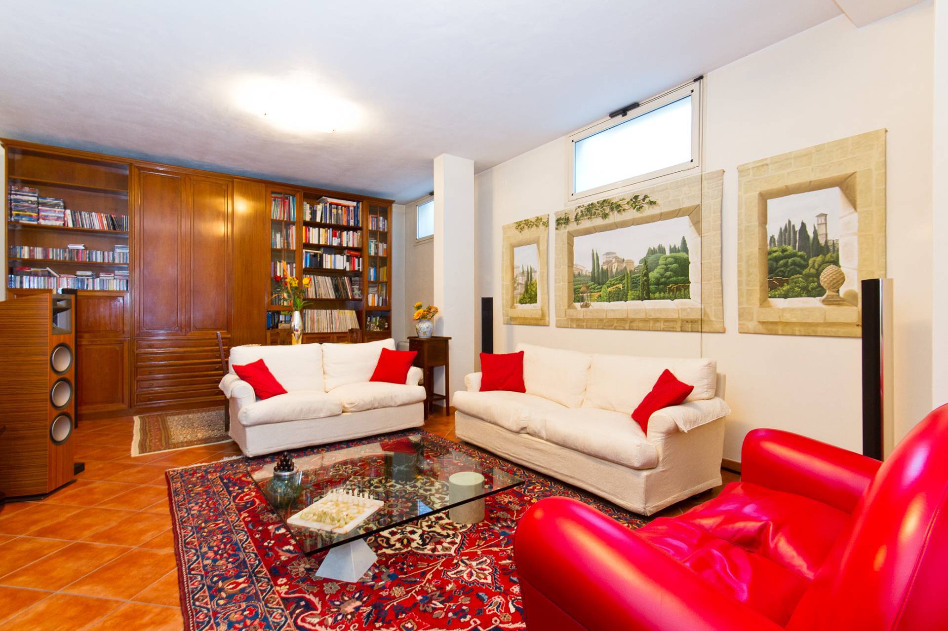 Al piano Seminterrato: Tavernetta, lavanderia, cantina ed autorimessa per quattro macchine con cancello elettrico e comoda rampa di accesso.