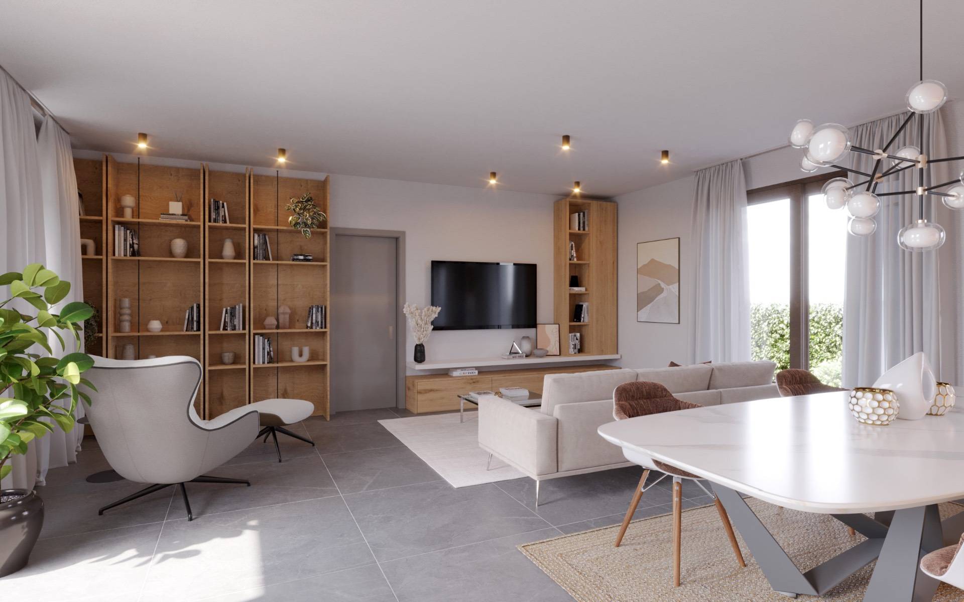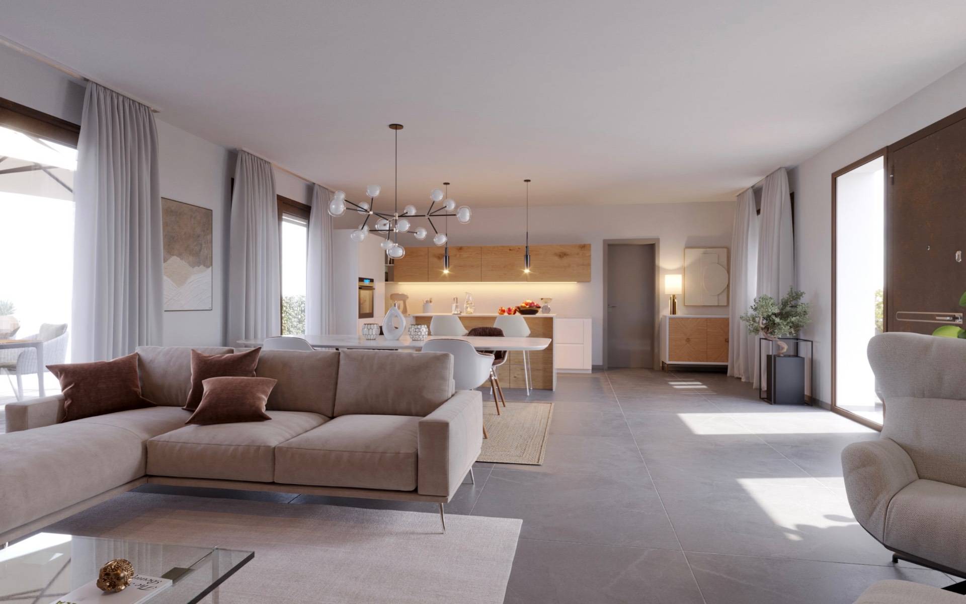 Il verde privato corredato di spazi pavimentati per il soggiorno estivo e si sviluppa su tutti i lati. La costruzione risponde ai pi recenti standard costruttivi e sar dotata di impianti per la produzione di energia da fonti rinnovabili, a vantaggio dellefficienza energetica e dei costi di gestione.