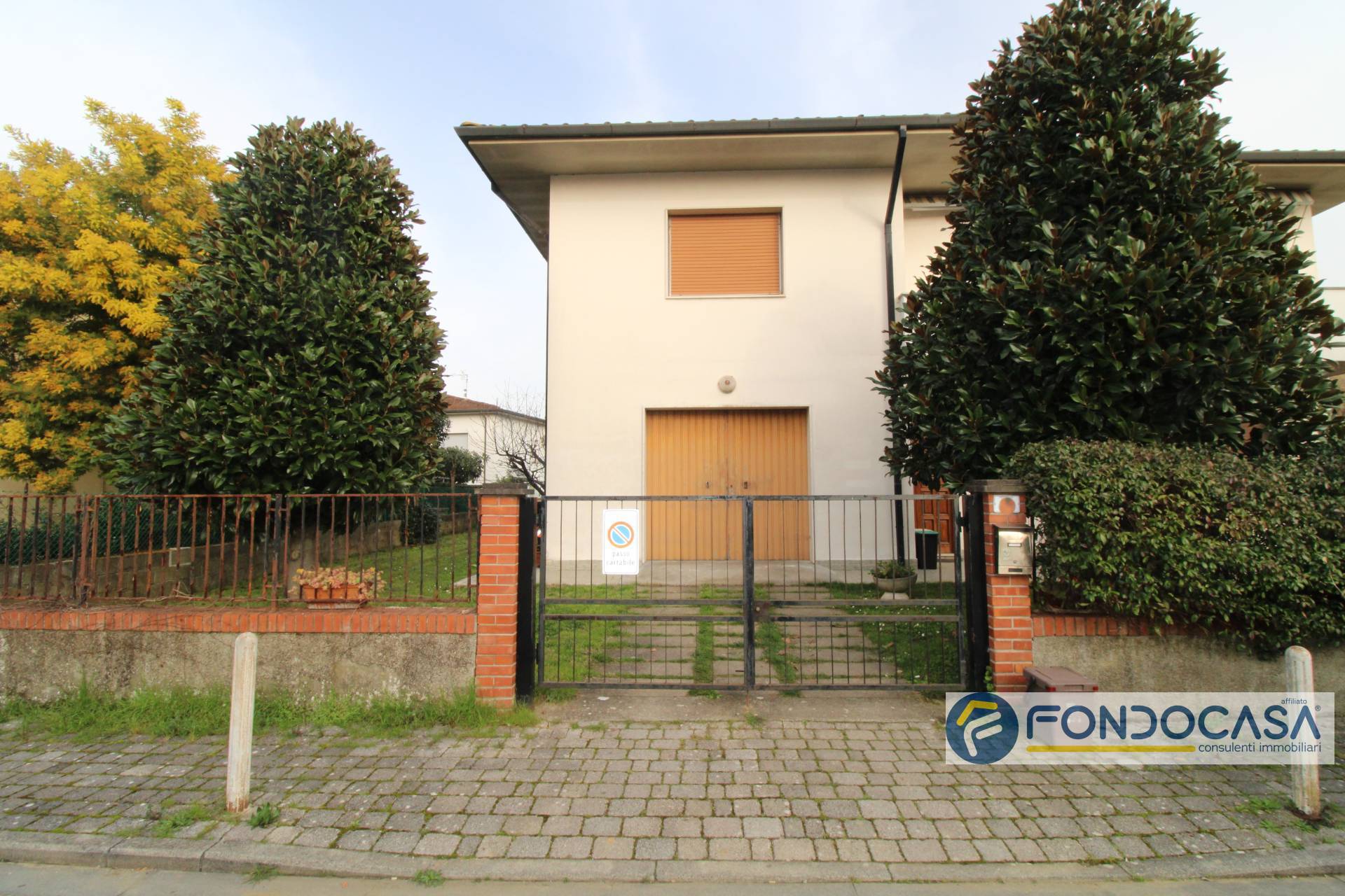 La villa ha un ingresso pedonale e carrabile ed circondata sui quattro lati dal giardino di circa 538 mq. La soluzione composta da due grandi appartamenti entrambi con ingresso indipendente, separati anche catastalmente ma resi comunicanti tra loro tramite una scala a chiocciola interna.