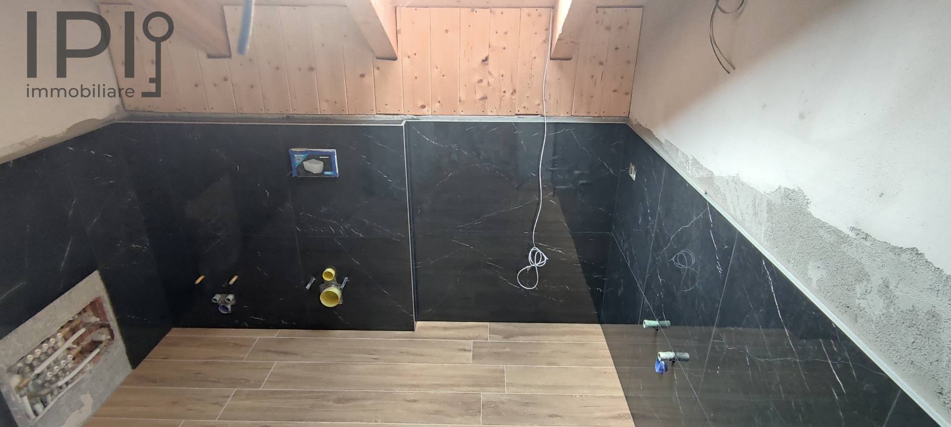 Anche a questo livello un balcone in fase di creazione,ma qui l'ambiente quasi ultimato con rivestimenti del bagno in marmo scuro e pavimenti in parquet.