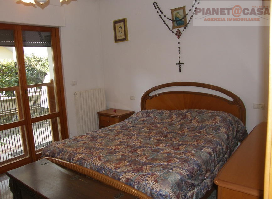 Piano Terra composto da ingresso su disimpegno, soggiorno, cucina, bagno, tre camere, terrazzo di mq 30 circa e giardino di mq 75 circa.