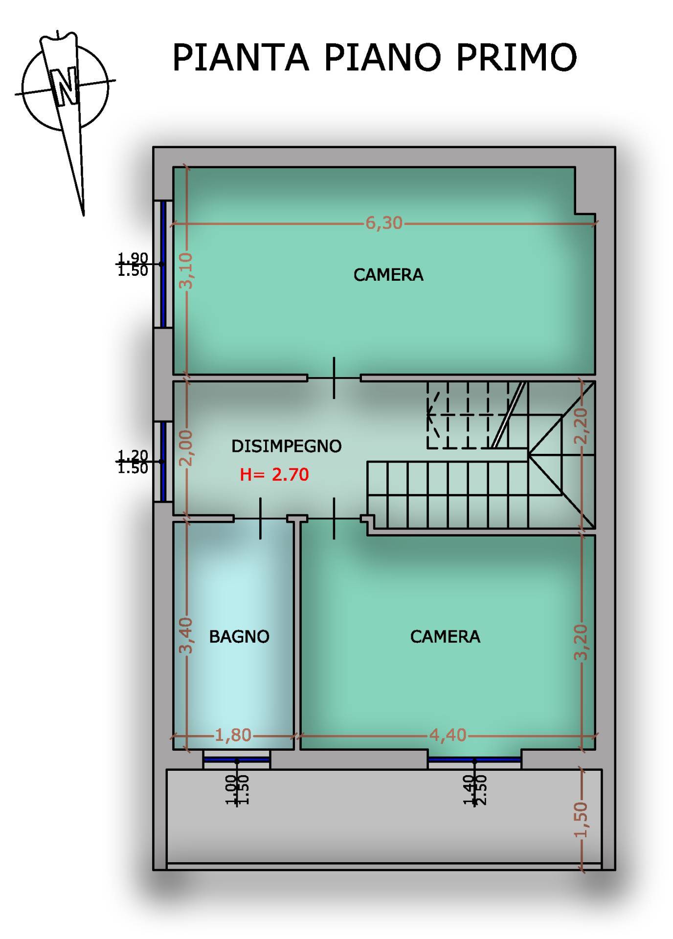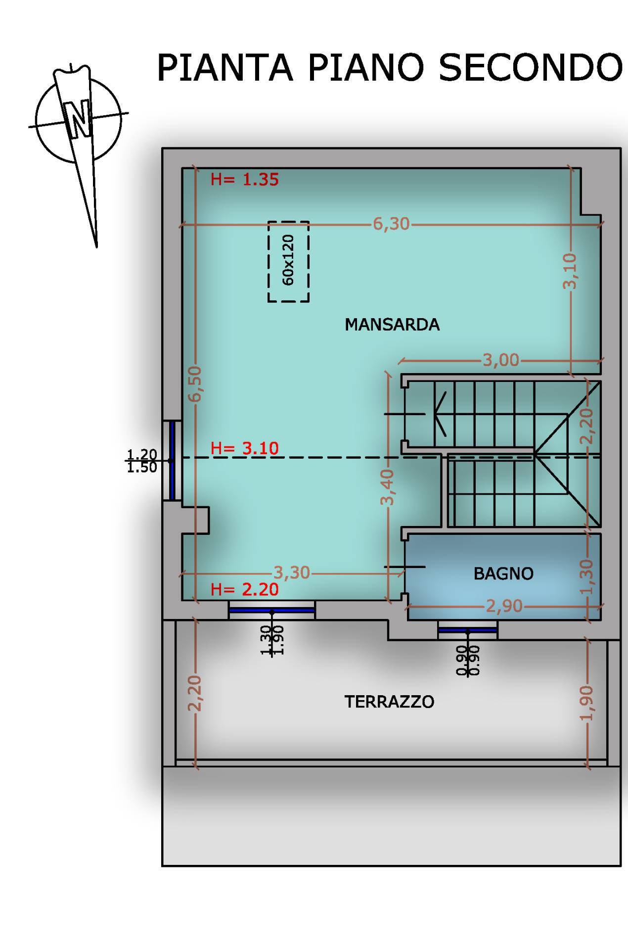 Al piano primo sviluppa la zona notte che comprende due grandi camere matrimoniali (possibilit della terza camera/studio), bagno e balcone il tutto collegato alla grande mansarda pluriuso servita da una terrazza vista mare. Completa la propriet un locale di circa 60 mq completo di servizio adibito a garage/ magazzino servito da rampa d'accesso e collegato internamente ai piani superiori.