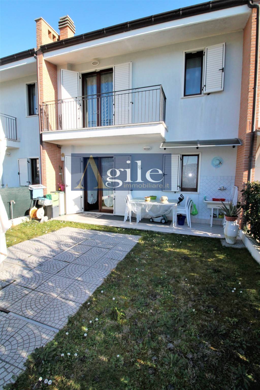Signorile villetta a schiera a Corropoli, in zona residenziale con: ascensore, tre camere da letto, due bagni, giardino, rustico e garage- RIF. 2222 Villetta a schiera delle dimensioni interne di mq 134 circa , rustico di mq 35 circa, garage di mq 35 circa, corte pavimentata di mq 60 circa e giardino di mq 50 circa libera su due lati; La proprieta' risulta cos suddivisa: ingresso con cancello per accedere al garage e scala privata per accedere all'ingresso dell'unita' abitativa; Primo piano cosi' suddivisa: ingresso su ampio e luminoso soggiorno con accesso ad un loggiato di 20 mq circa, ampia cucina abitabile con accesso al giardino di 50 mq circa e un bagno finestrato con box doccia; Da un elegante scala o da un comodo ascensore si accede alla zona notte dove troviamo due camere da letto matrimoniali, una cameretta/studio al momento utilizzata come cabina armadio della camera matrimoniale padronale ma facilmente ripristinabile a cameretta, un ampio bagno finestrato con vasca idromassaggio; Dalla zona giorno, tramite una comoda scala o dall'ascensore si accede al locale seminterrato di 67 mq circa in parte adibito a rustico con cucina componibile e in parte a garage, locale lavanderia con servizi; Completa la proprieta' una corte esterna di 60 mq circa, antistante l'ingresso della proprieta' completamente pavimentata e un posto auto di 12 mq circa posto di fronte la proprieta' Ottime le condizioni interne, pari al nuovo, con finiture di pregio, pavimentazione in monocottura per la zona rustico e garage, gress porcellanato per la zona giorno e parquet per la zona notte, portoncino blindato, infissi in legno con doppi vetri e persiane in alluminio con alette regolabili, porte interne Garofoli, predisposizione Clima; Questa soluzione in vendita a Corropoli, in zona residenziale, rappresenta un ottimo investimento oltre che la residenza ideale per un nucleo familiare numeroso in cerca di una soluzione di pregio, indipendente e in zona residenziale tranquilla, vicina alla totalita' dei servizi raggiungibili comodamente; Per ulteriori informazioni e per eventuali visite potete contattare il numero 0735.060012, siamo disponibili presso i nostri uffici siti a San Benedetto del Tronto in via L. Bianchi, 18. Contatta l'inserzionista