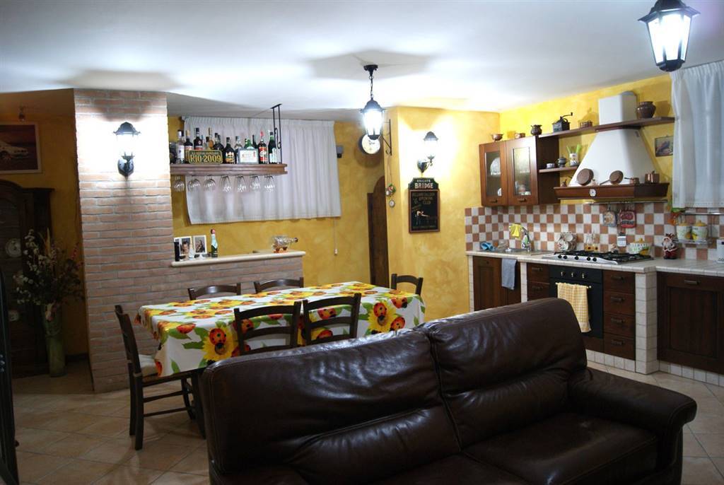 Piano seminterrato ampio rustico con cucina in muratura, camino, bagno con doccia e vasca, locale tecnico/lavanderia.