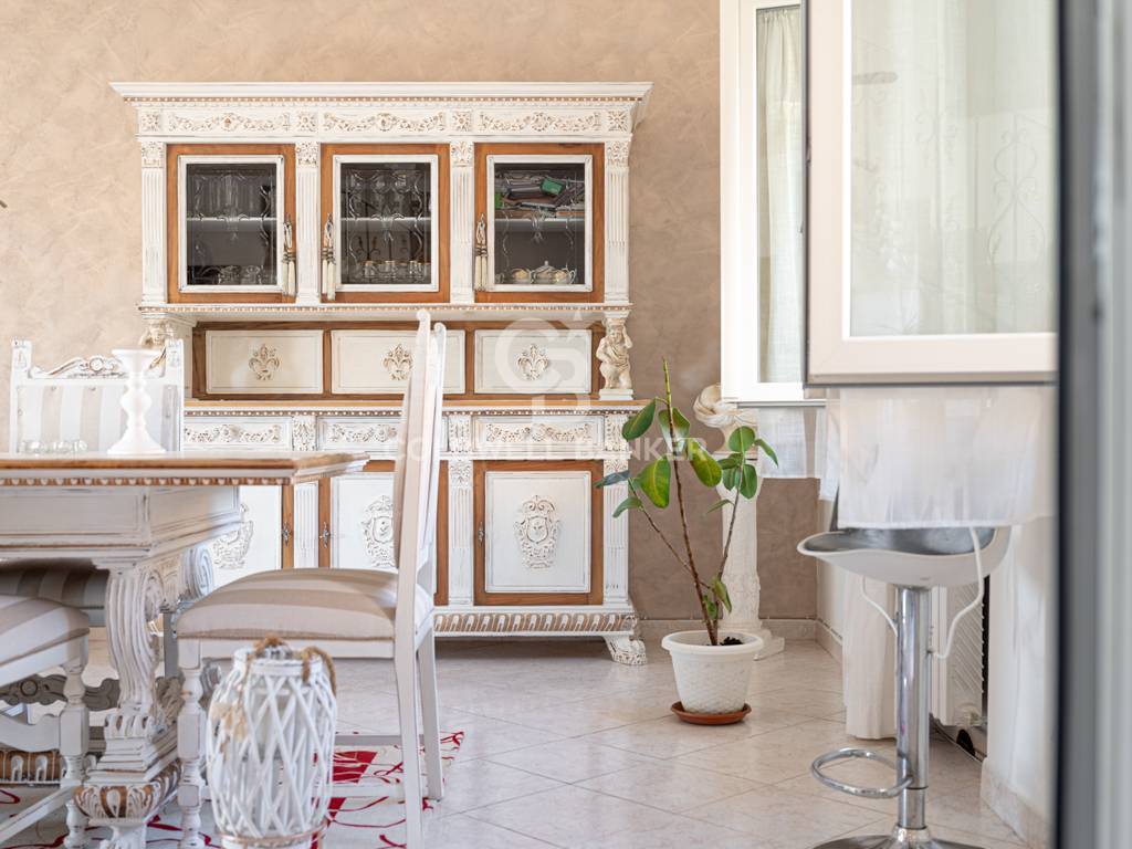 Al piano terra rialzato si trova un ampio e luminoso soggiorno con accesso al balcone verandato, ideale per trascorrere piacevoli momenti, ed una cucina a vista ben organizzata.
