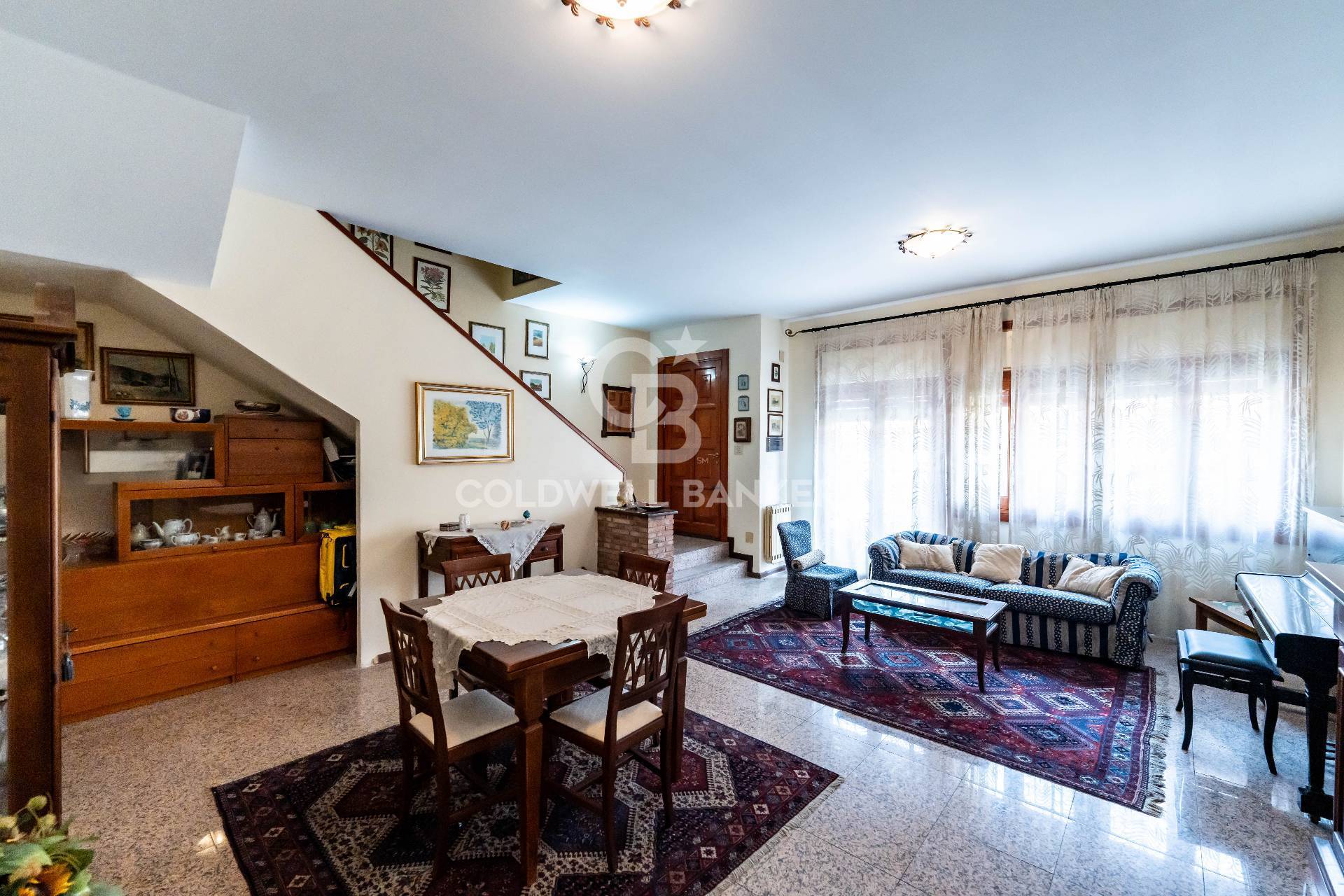 Al piano terra, lingresso si apre su un curato giardino di circa 40 mq che conduce a un ampio salone, perfetto per momenti di relax e convivialit.